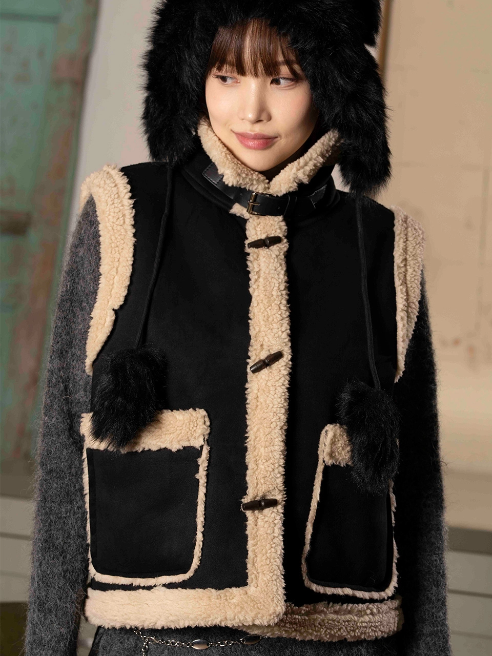 더그린랩_FAUX 무스탕 베스트 [Black]