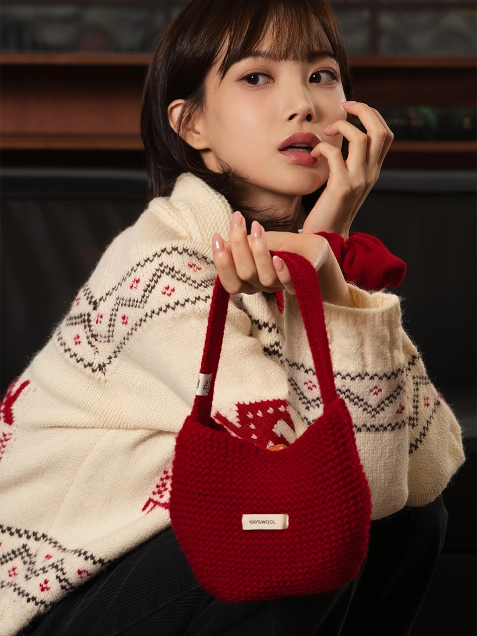더그린랩_울니트 미니 토트백 [Red]