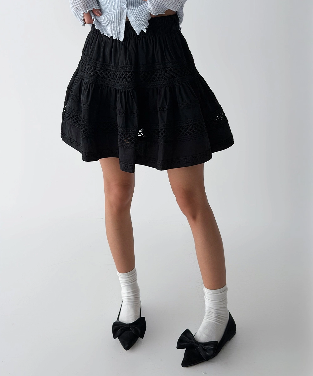 더그린랩_레이스 캉캉 미니스커트 [Black]