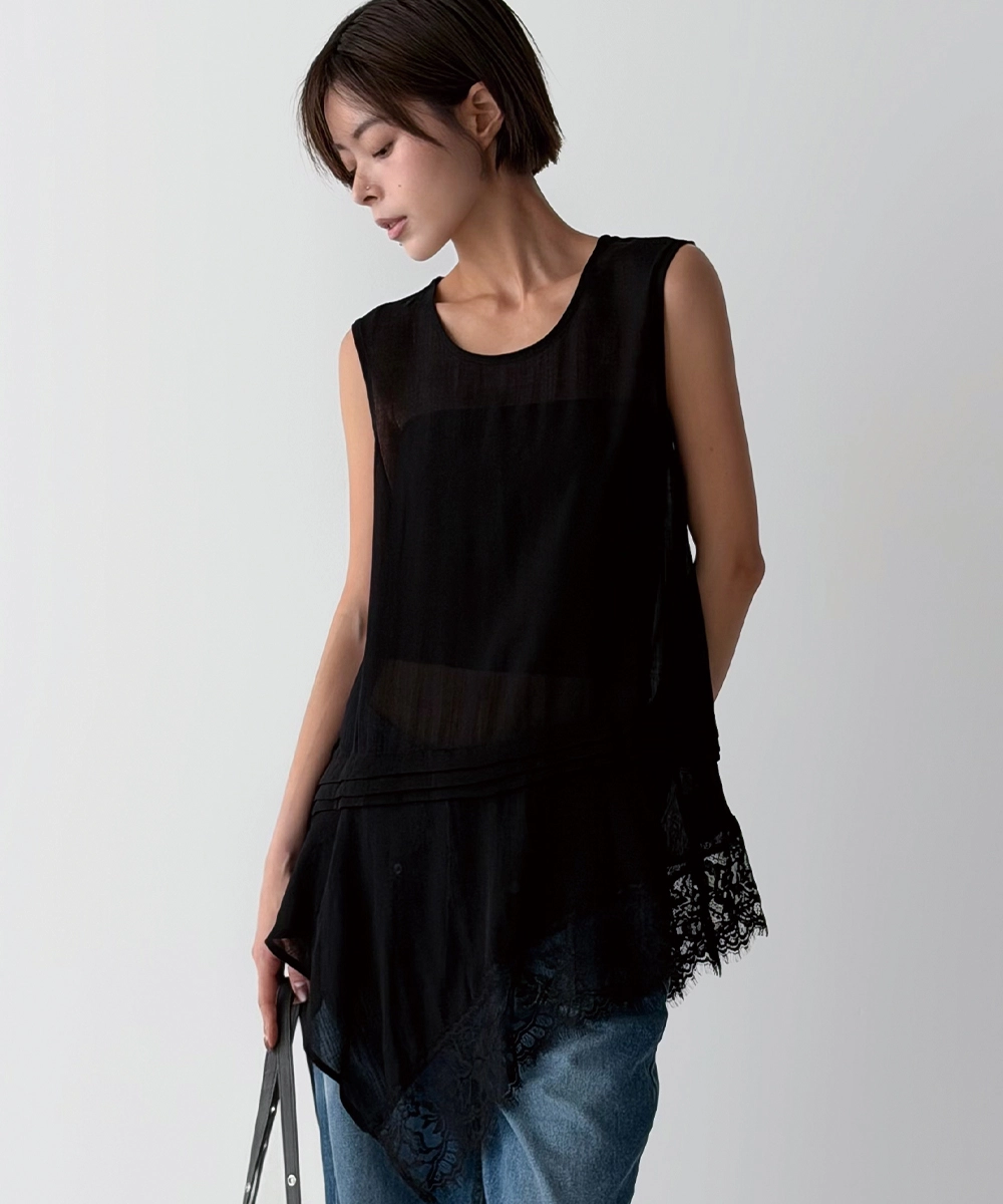 더그린랩_페미닌 언발 레이스 시스루 탑 [Black]