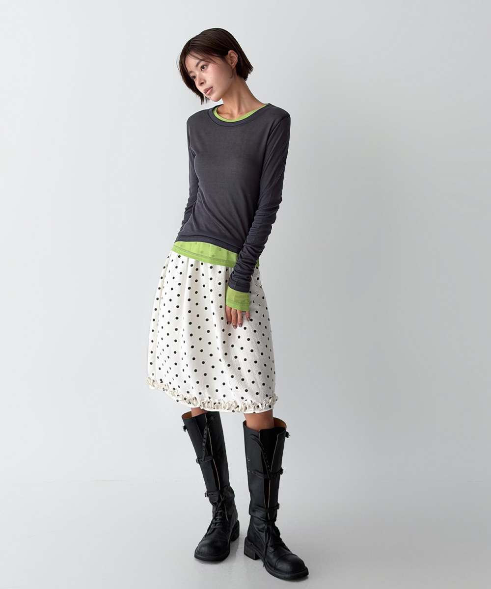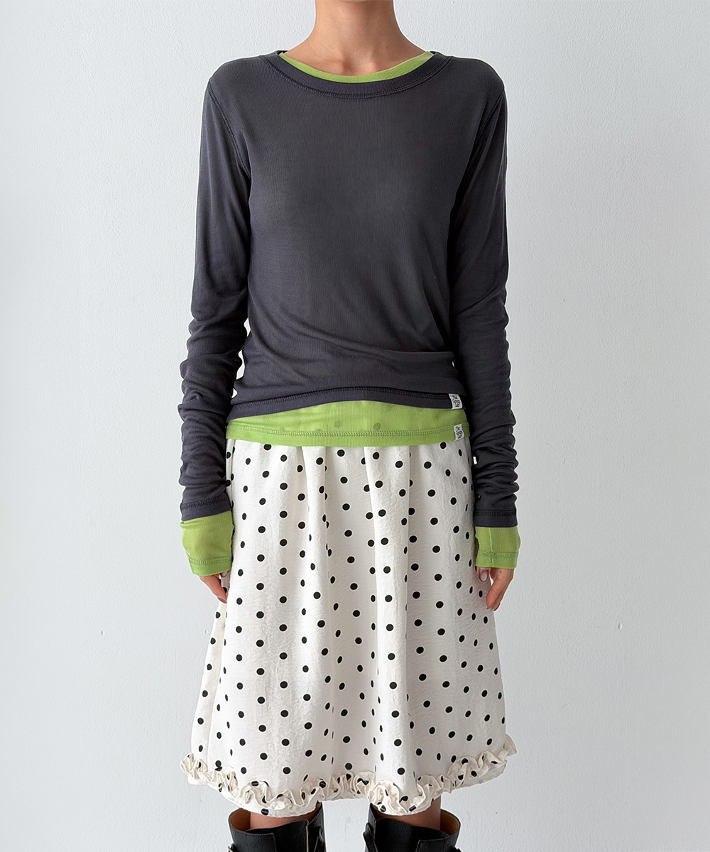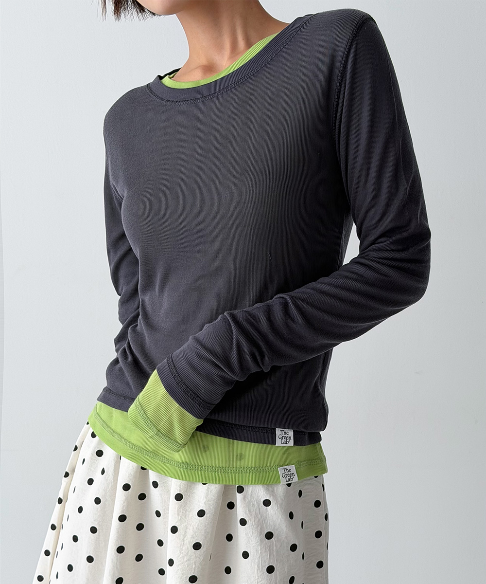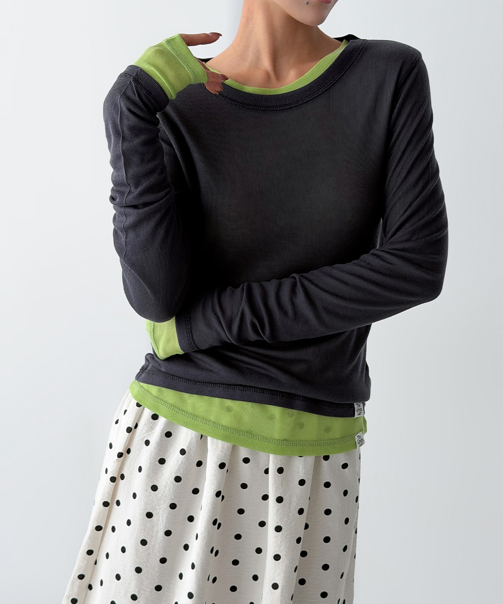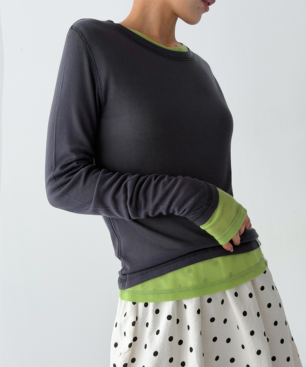 바디 라인을 따라 자연스럽게 밀착되는 슬림 핏과 손등을 여유 있게 덮는 롱 슬리브 설계로, 전체적인 실루엣을 더욱 균형감 있게 연출해 줍니다.