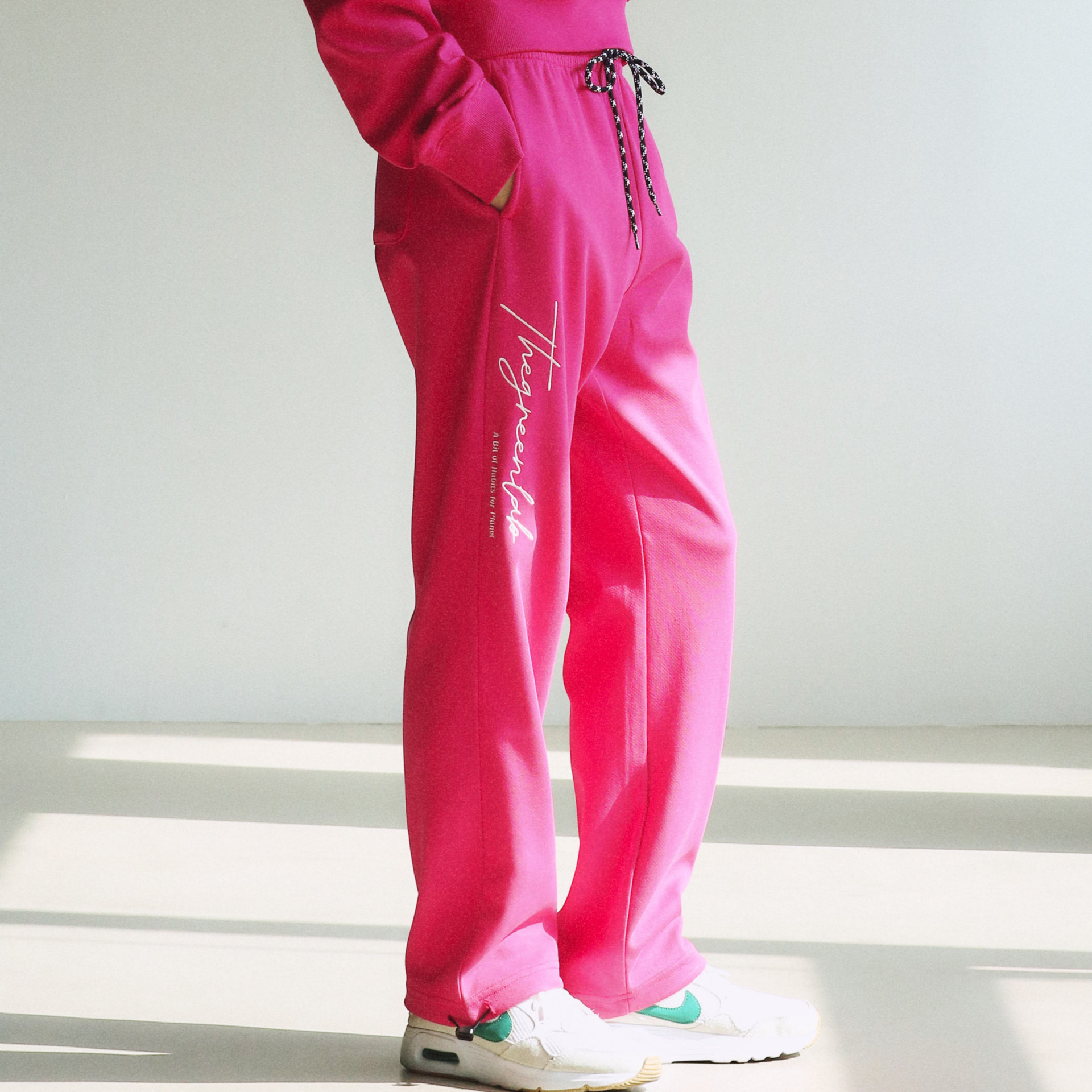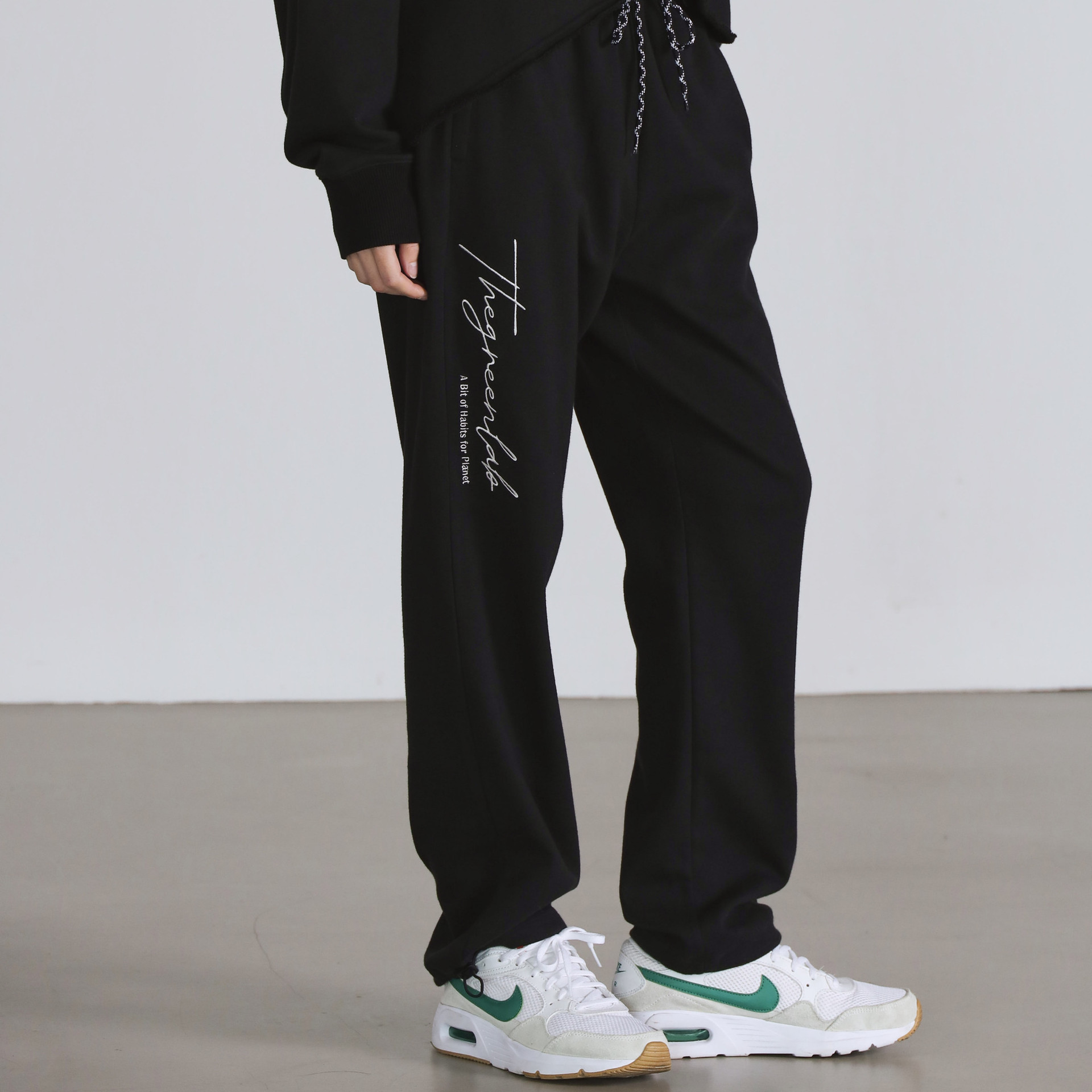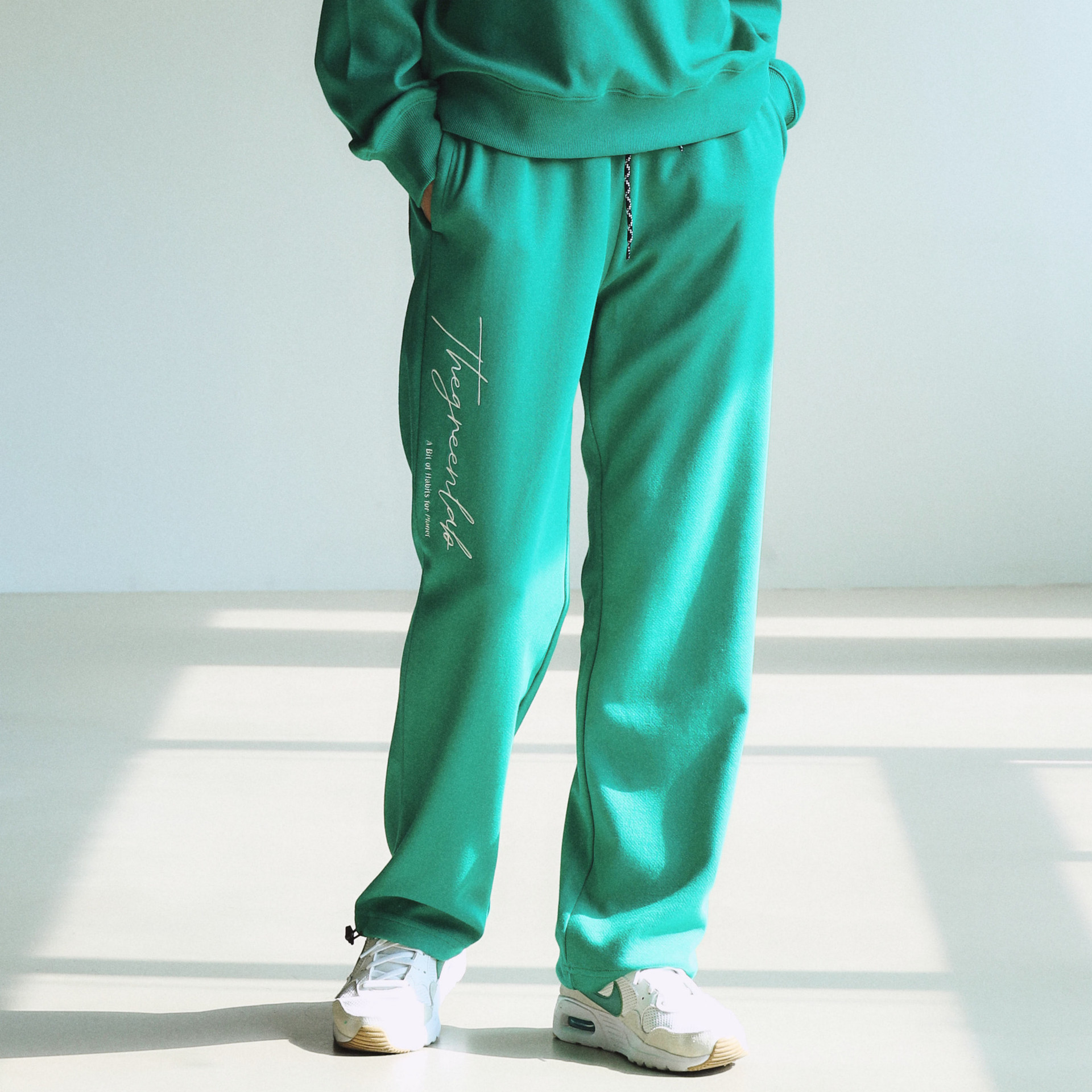 The Green Lab 뉴 로고 자수가 매력적인 세미 오버핏의 조거 스웻팬츠입니다.