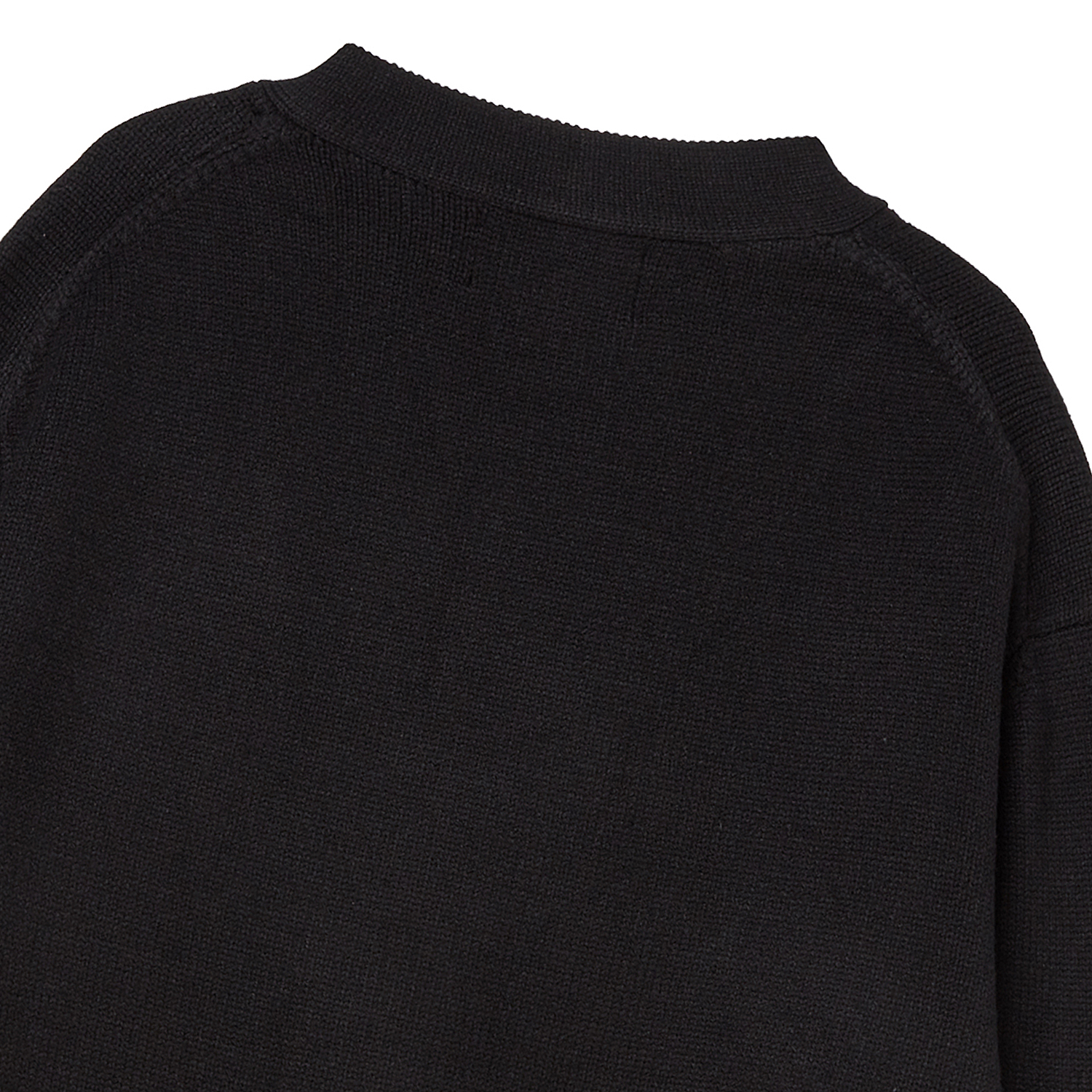 답답하지 않은 브이넥 디자인에 같은 톤의 버튼을 사용, 가장자리는 깔끔한 골지 마감처리하였습니다.