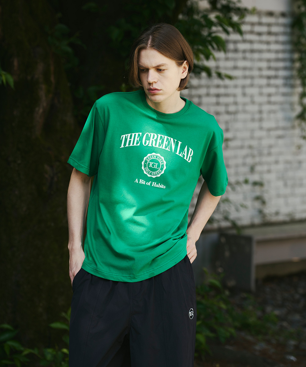 친환경 리사이클 소재의 바시티 그래픽 반팔티