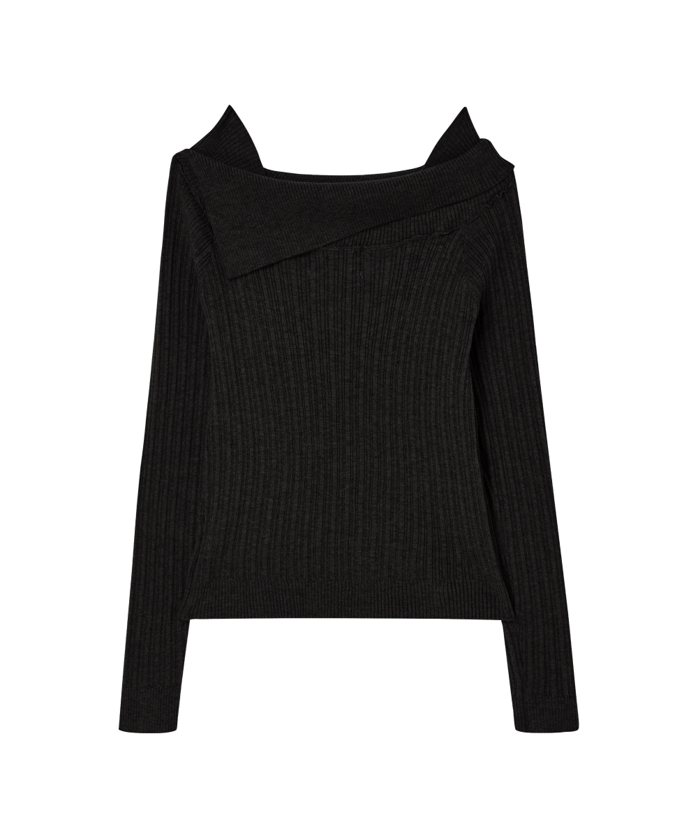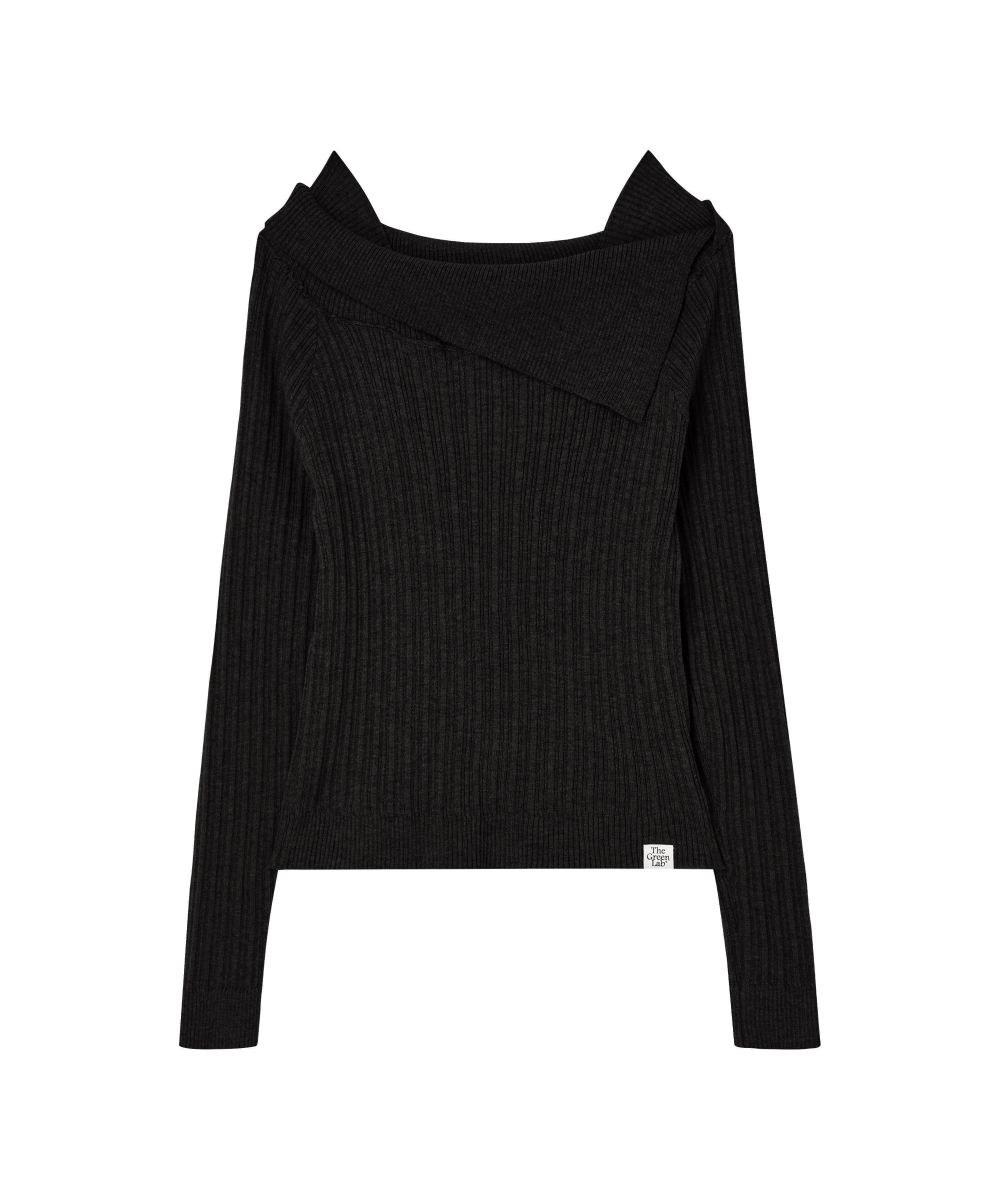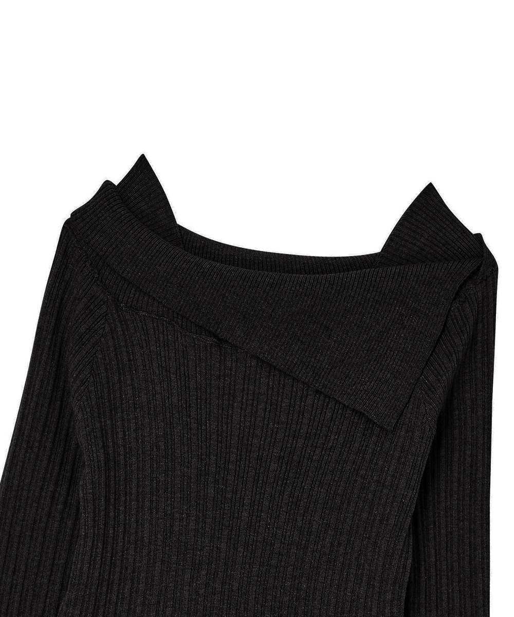 더그린랩_오프숄더 슬림 골지 니트 [Black]SALE