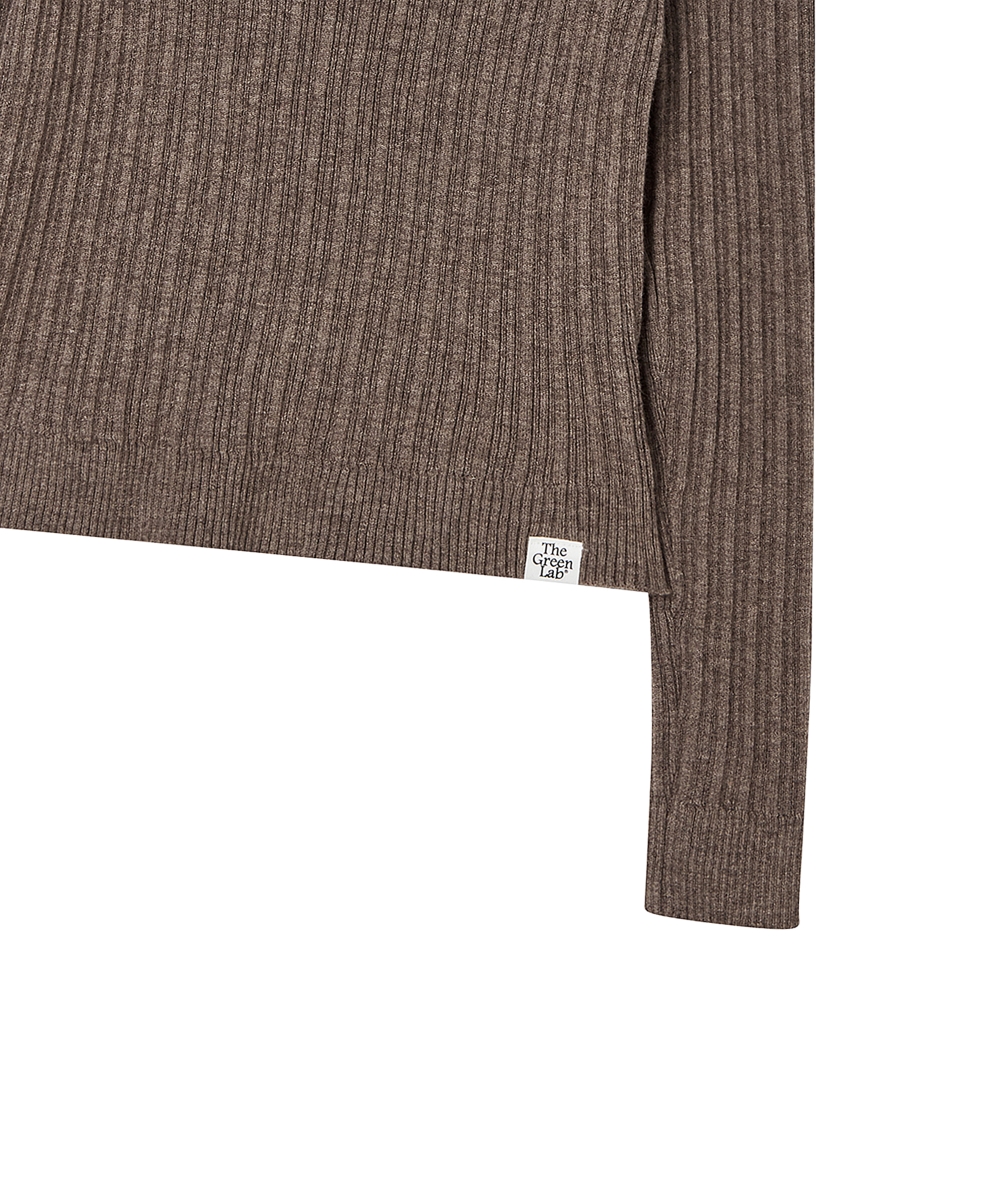 골지 원단 특유의 신축성으로 바디라인을 잡아주는 슬림 핏의 니트