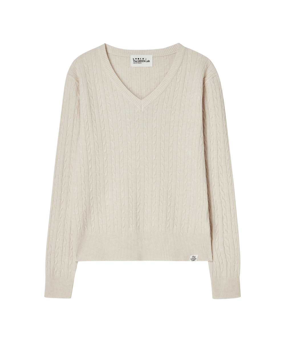 더그린랩_브이넥 케이블 니트 풀오버 [Oatmeal]SALE