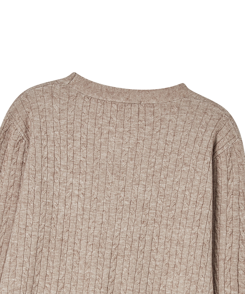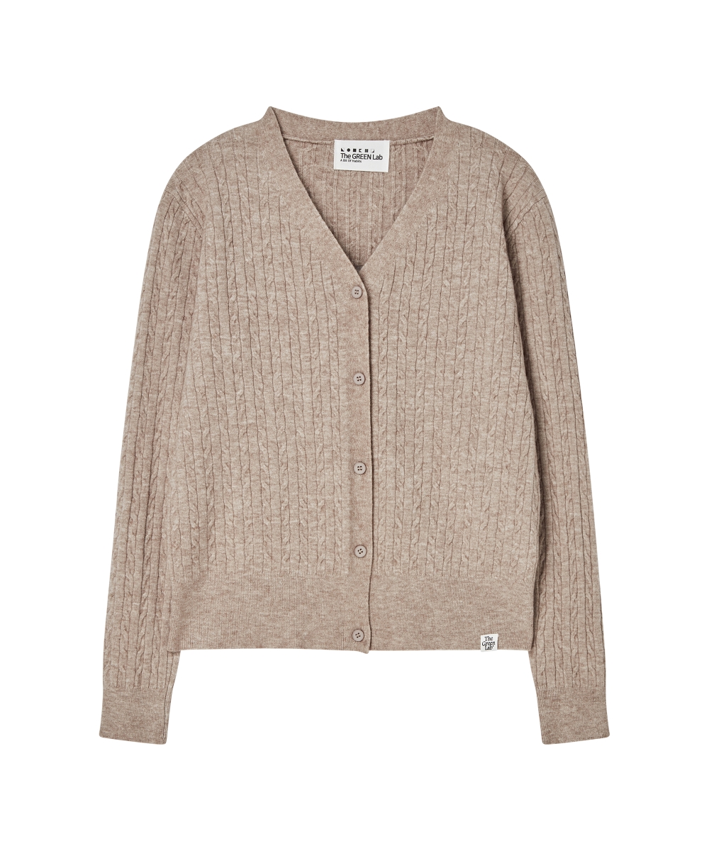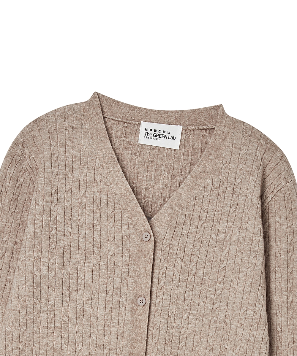더그린랩_브이넥 케이블 니트 가디건 [Melange Beige]