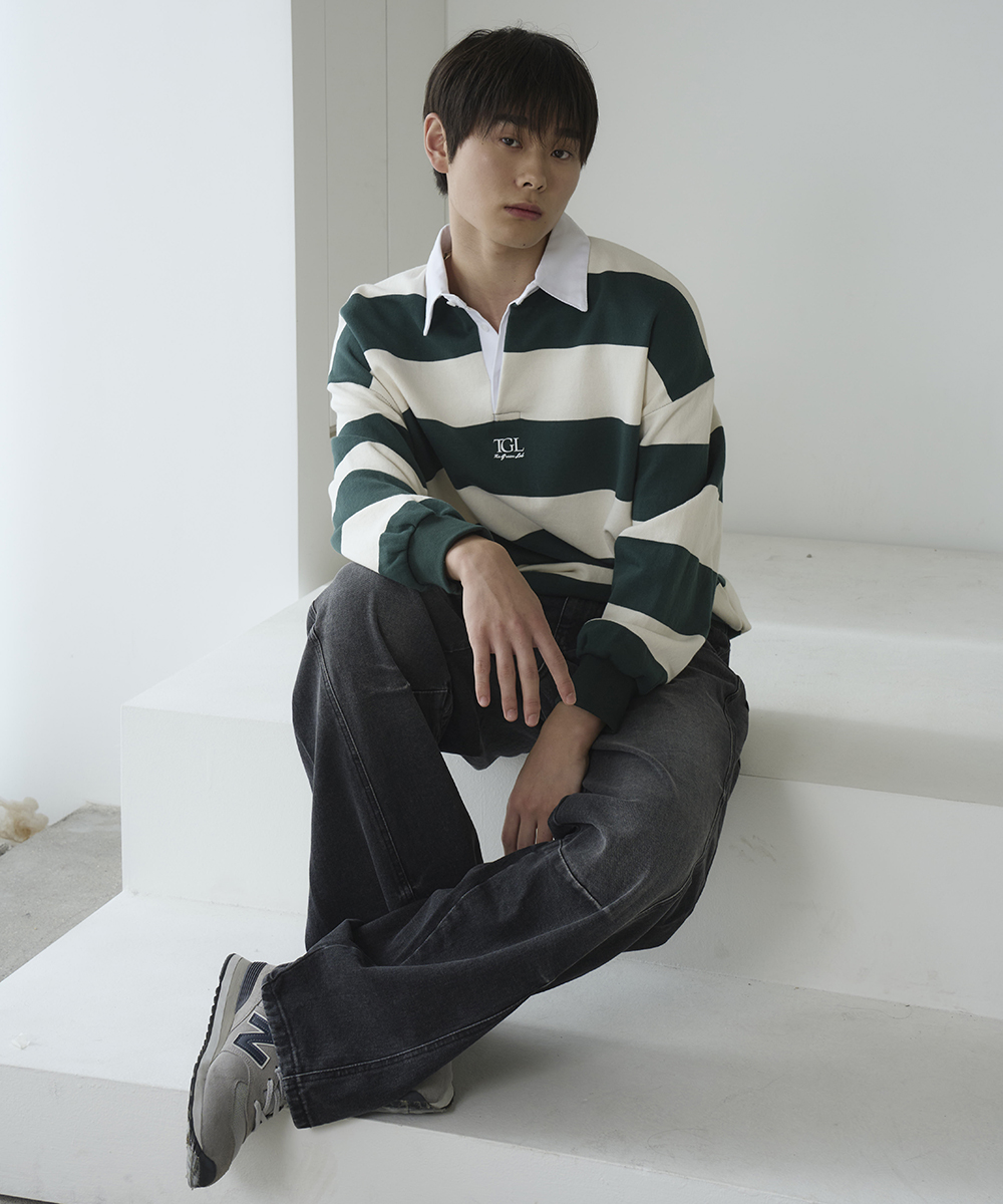 소프트한 터치감의 쭈리 스트라이프 럭비 맨투맨 티셔츠