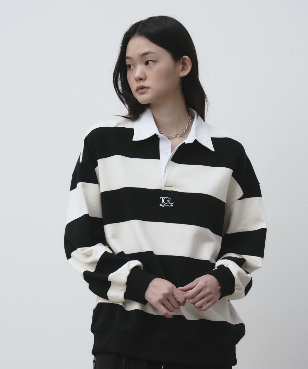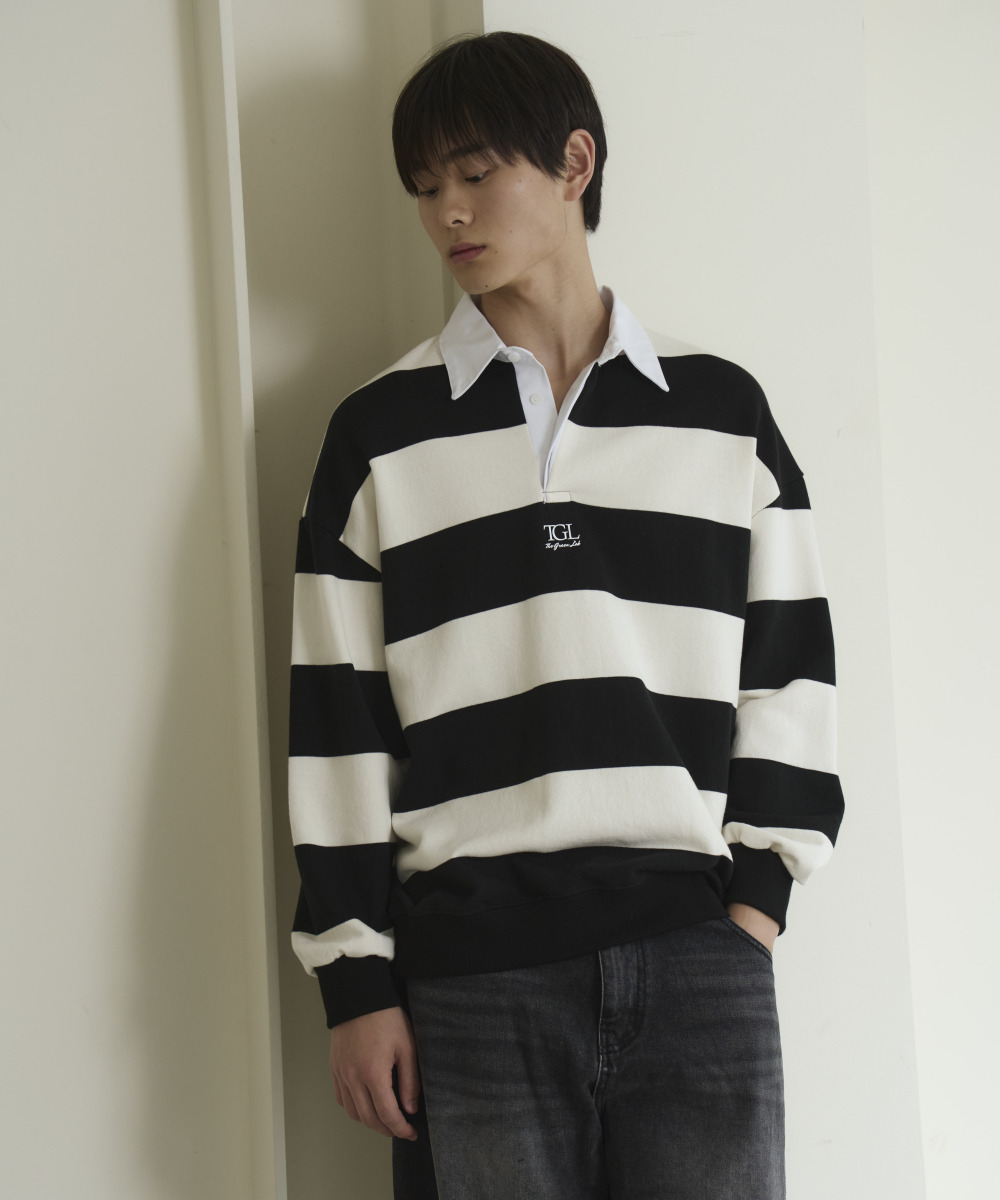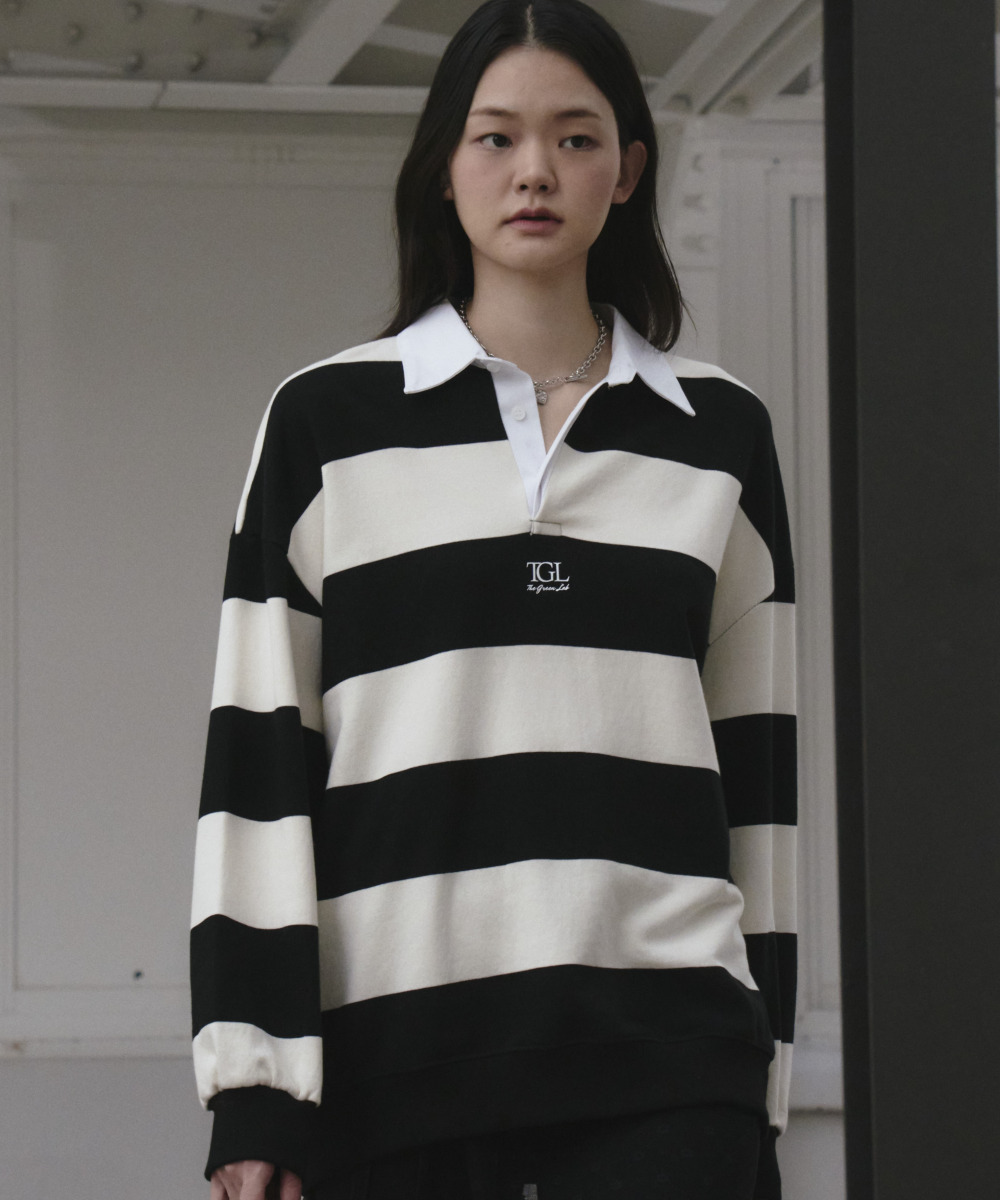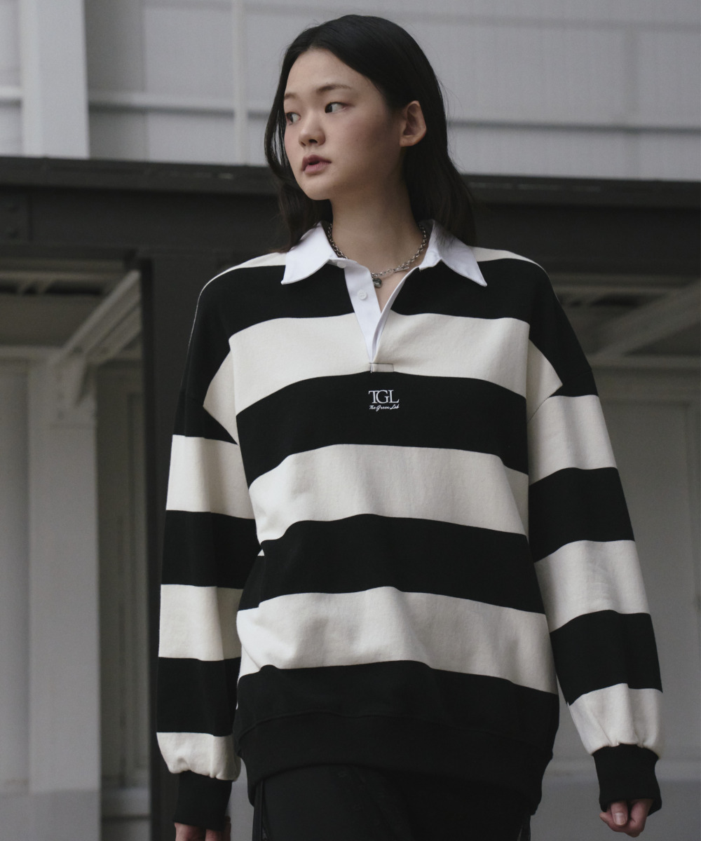소프트한 터치감의 쭈리 스트라이프 럭비 맨투맨 티셔츠
