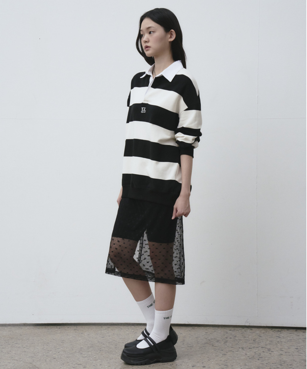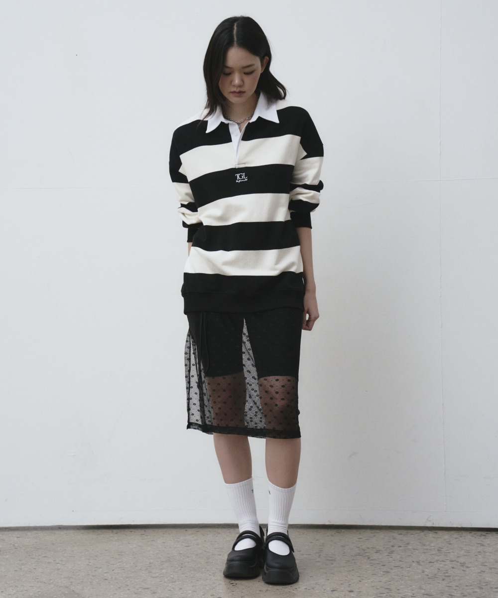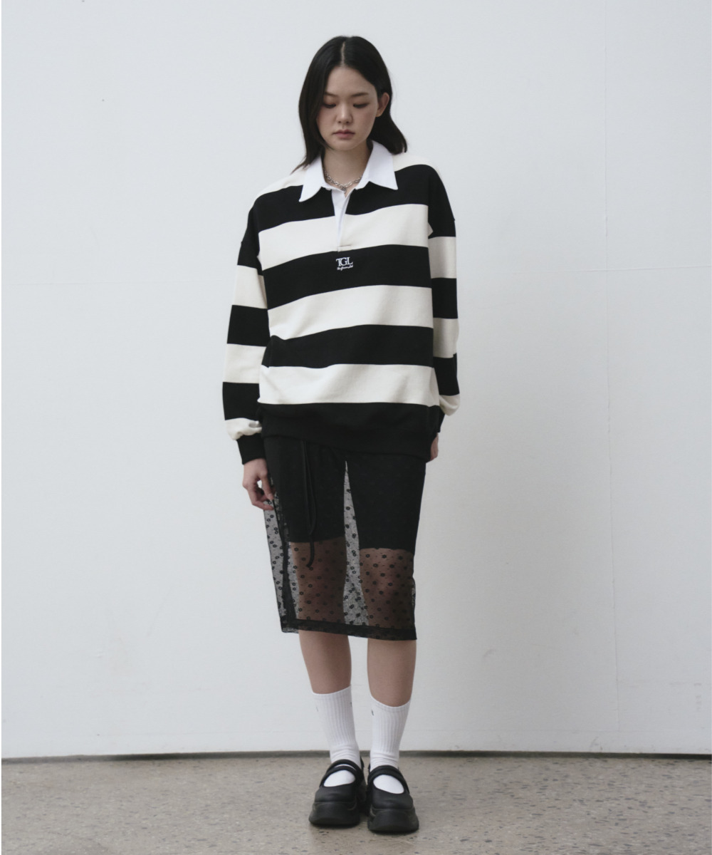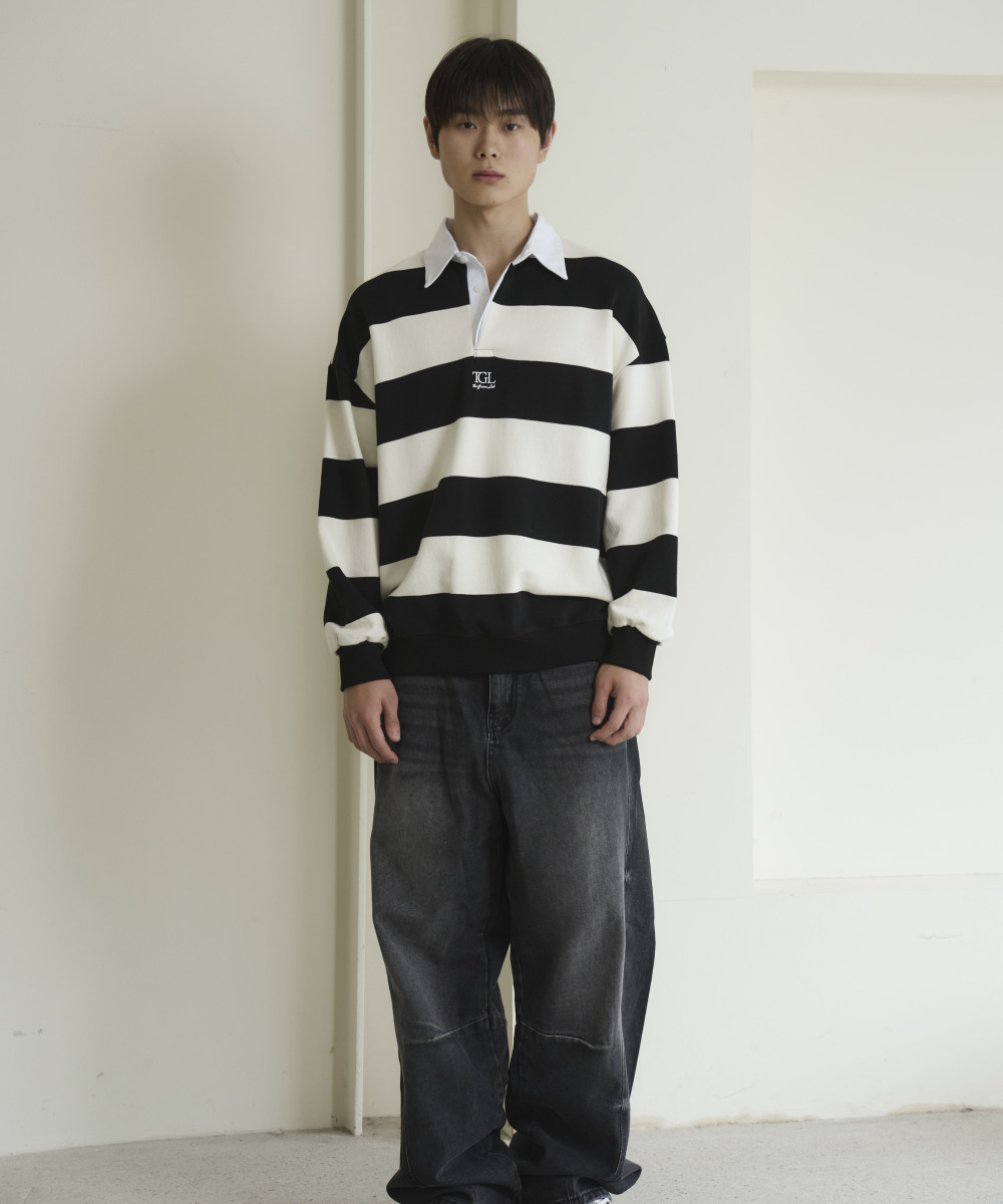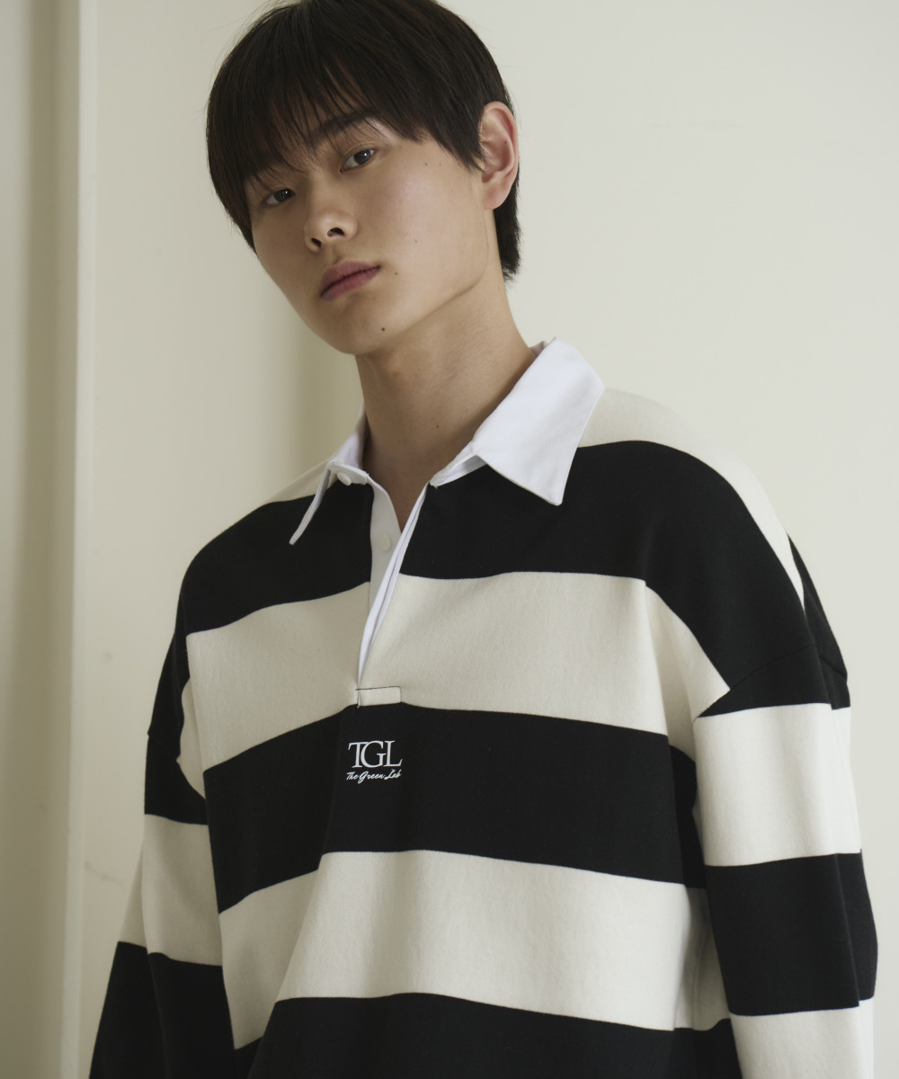 소프트한 터치감의 쭈리 스트라이프 럭비 맨투맨 티셔츠
