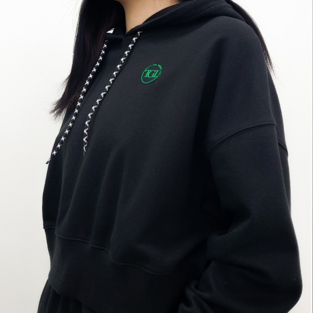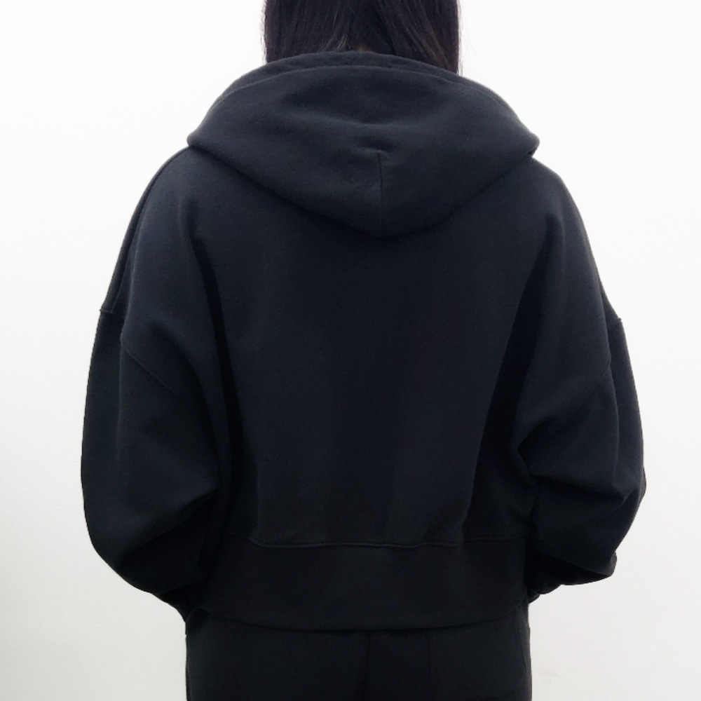 부담스럽지 않은 크롭 기장의 오버핏 실루엣