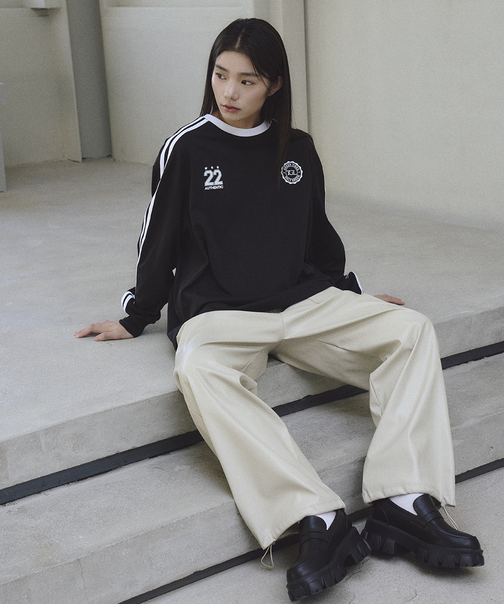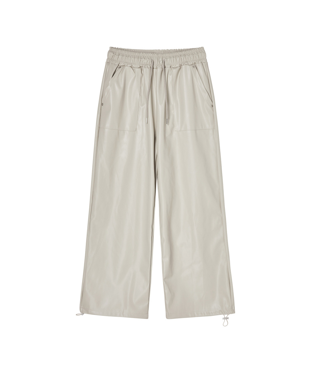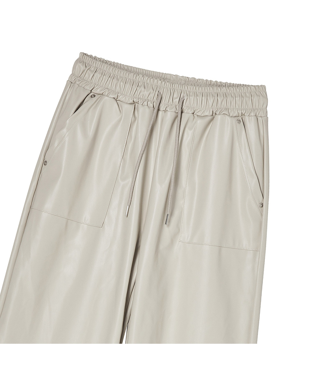 전체적인 룩에 시크한 포인트를 더하는 에코 레더 팬츠
