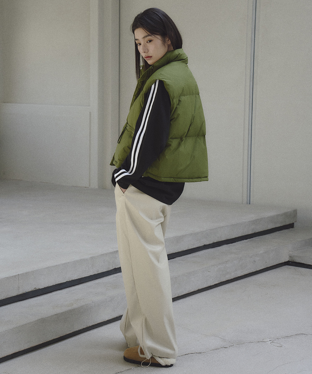 밑단의 스트링 디테일을 이용해 다양한 실루엣 연출 가능