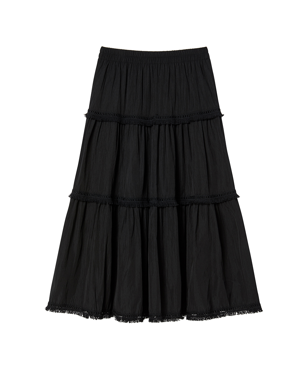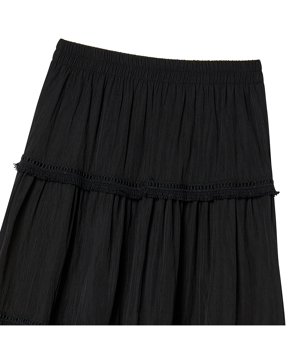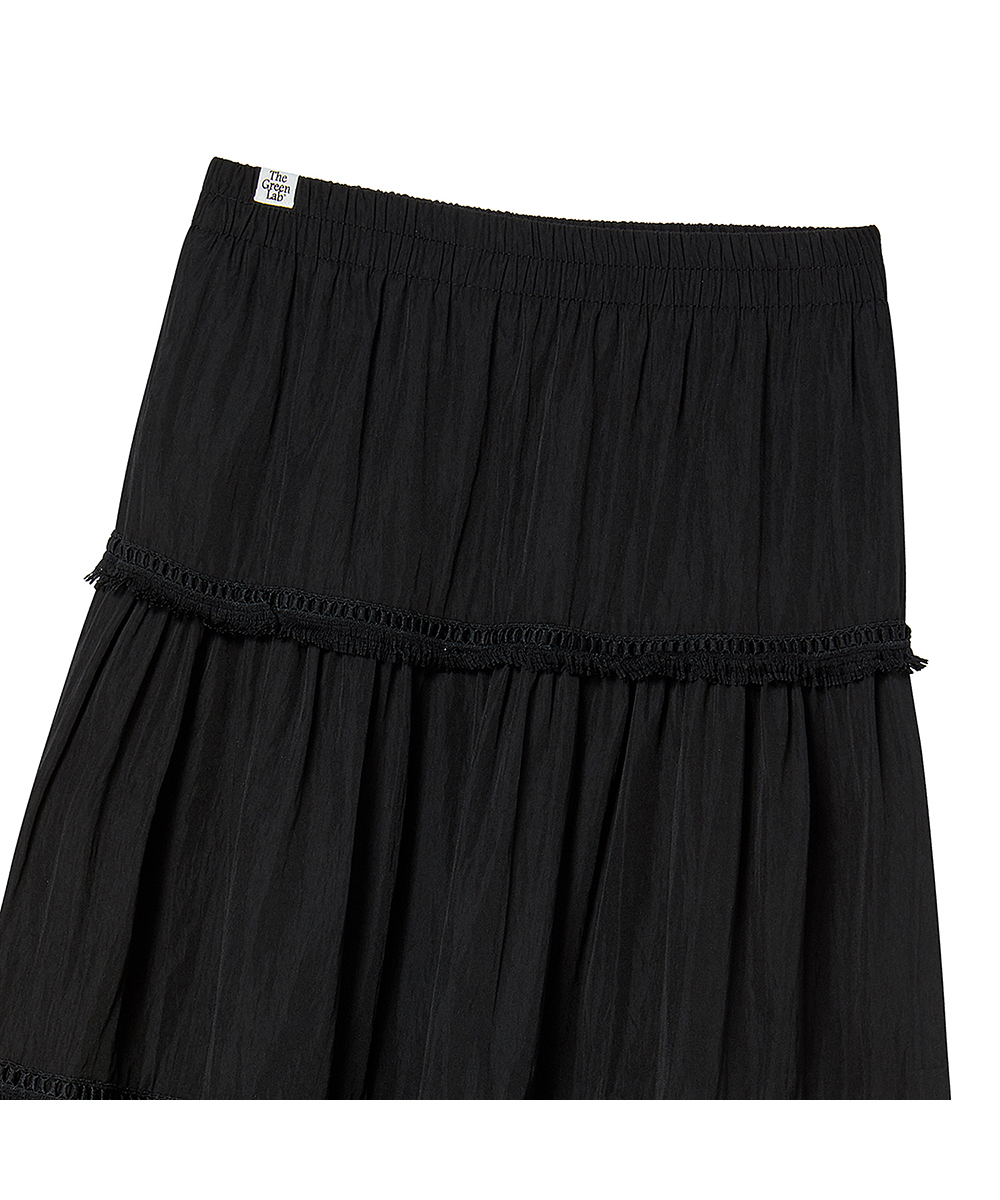 내추럴한 실루엣이 돋보이는 테슬 프릴 롱스커트