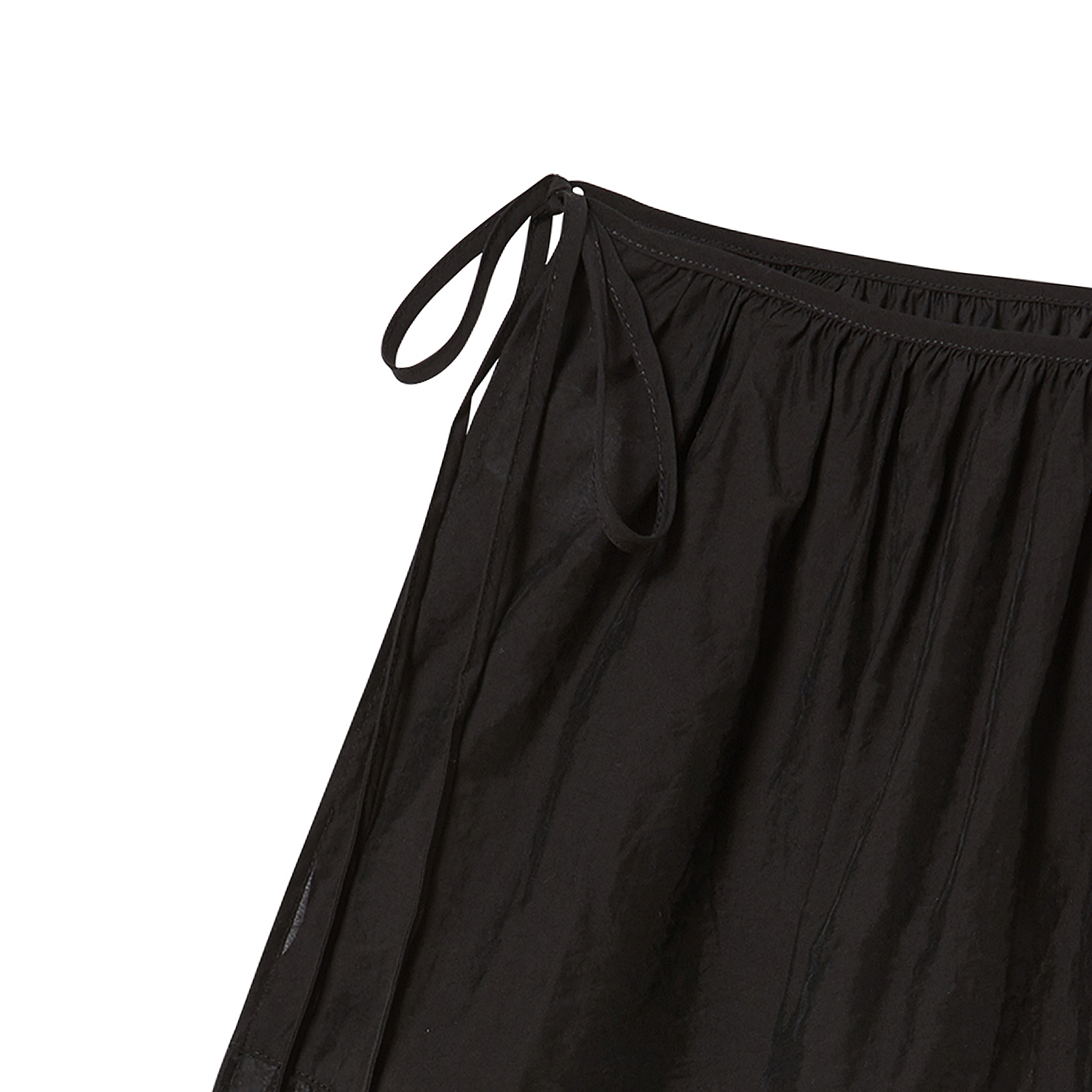 허리 한쪽에서 묶는 랩스타일로 여성스럽고 러블리한 무드