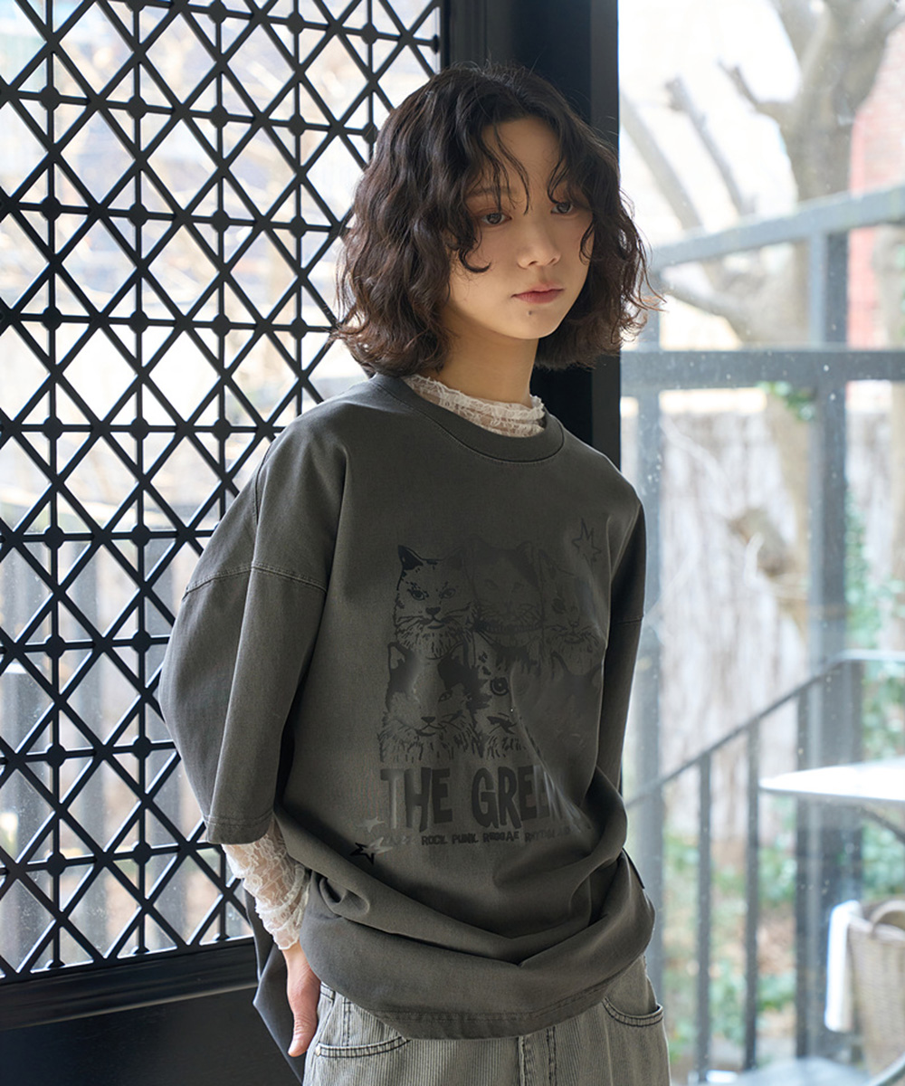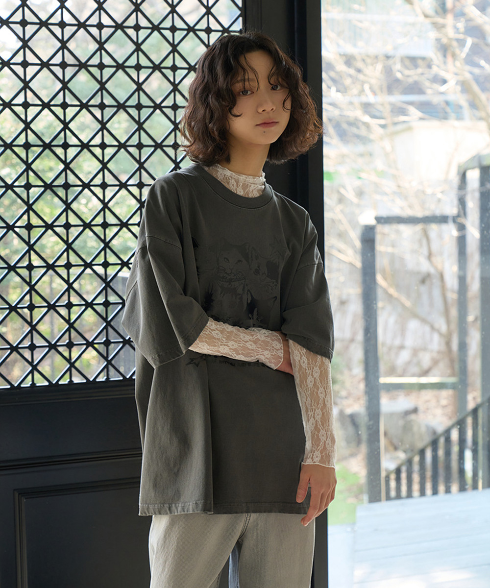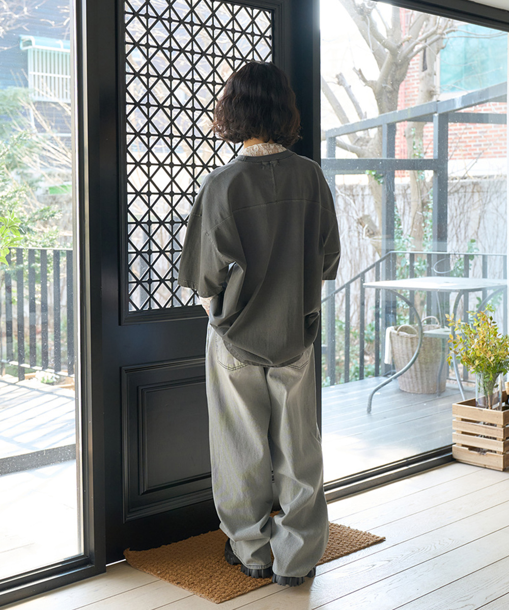 수피마 코튼으로 제작한 오버핏 피그먼트 다잉 반팔 티셔츠