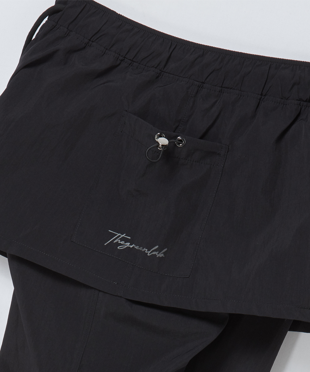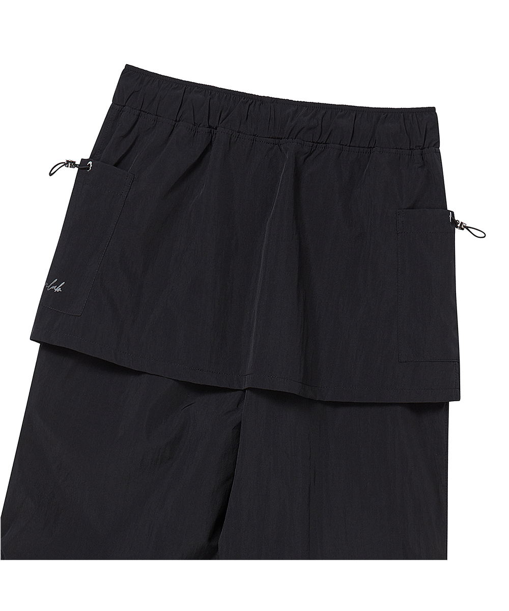 겹쳐 입은 듯한 스커트 레이어드 디자인의 와이드 팬츠