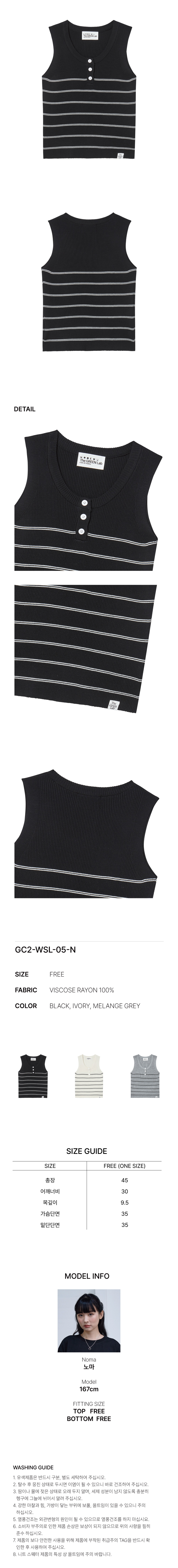 더그린랩_스트라이프 슬리브리스 버튼 탑 [Black]