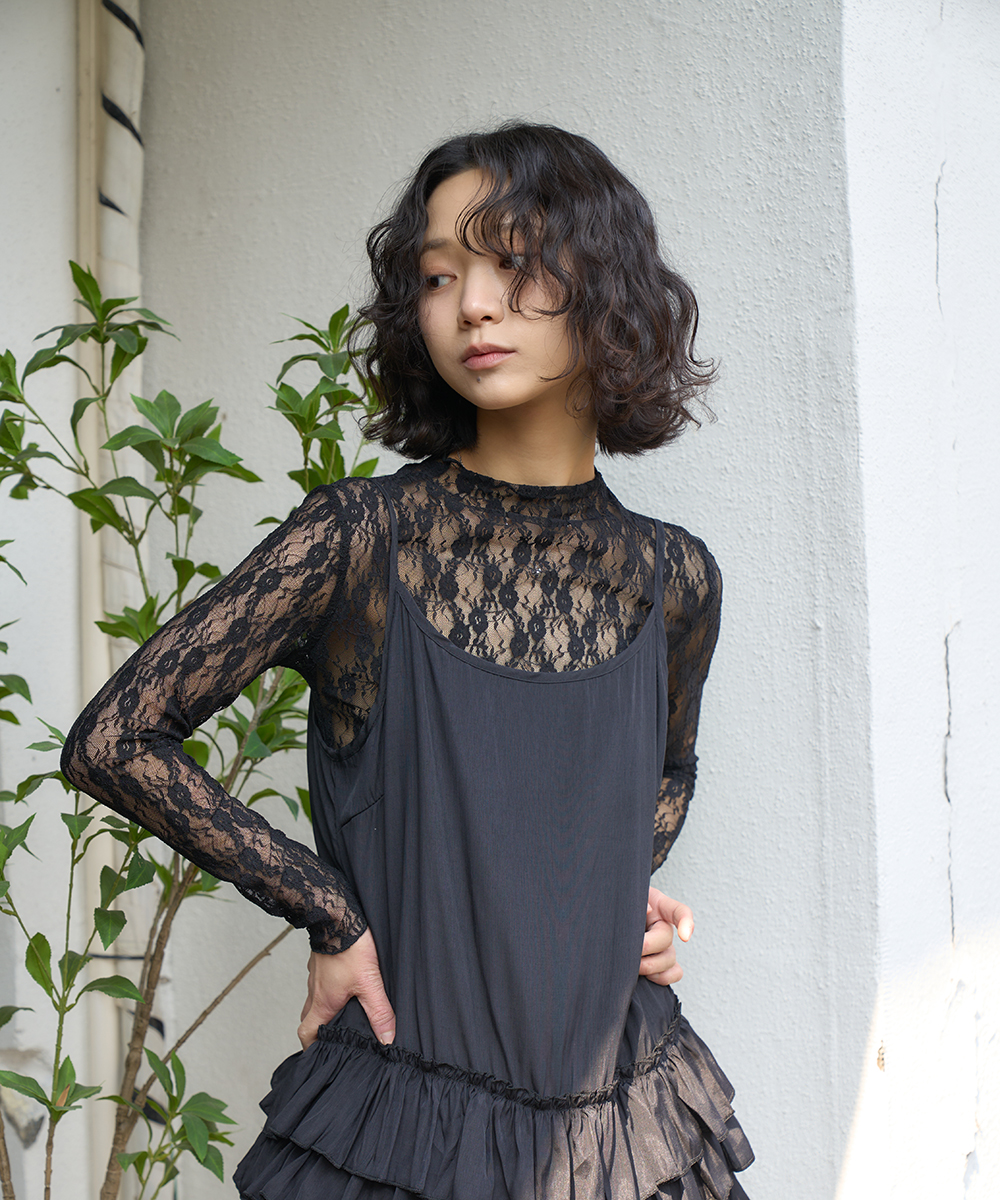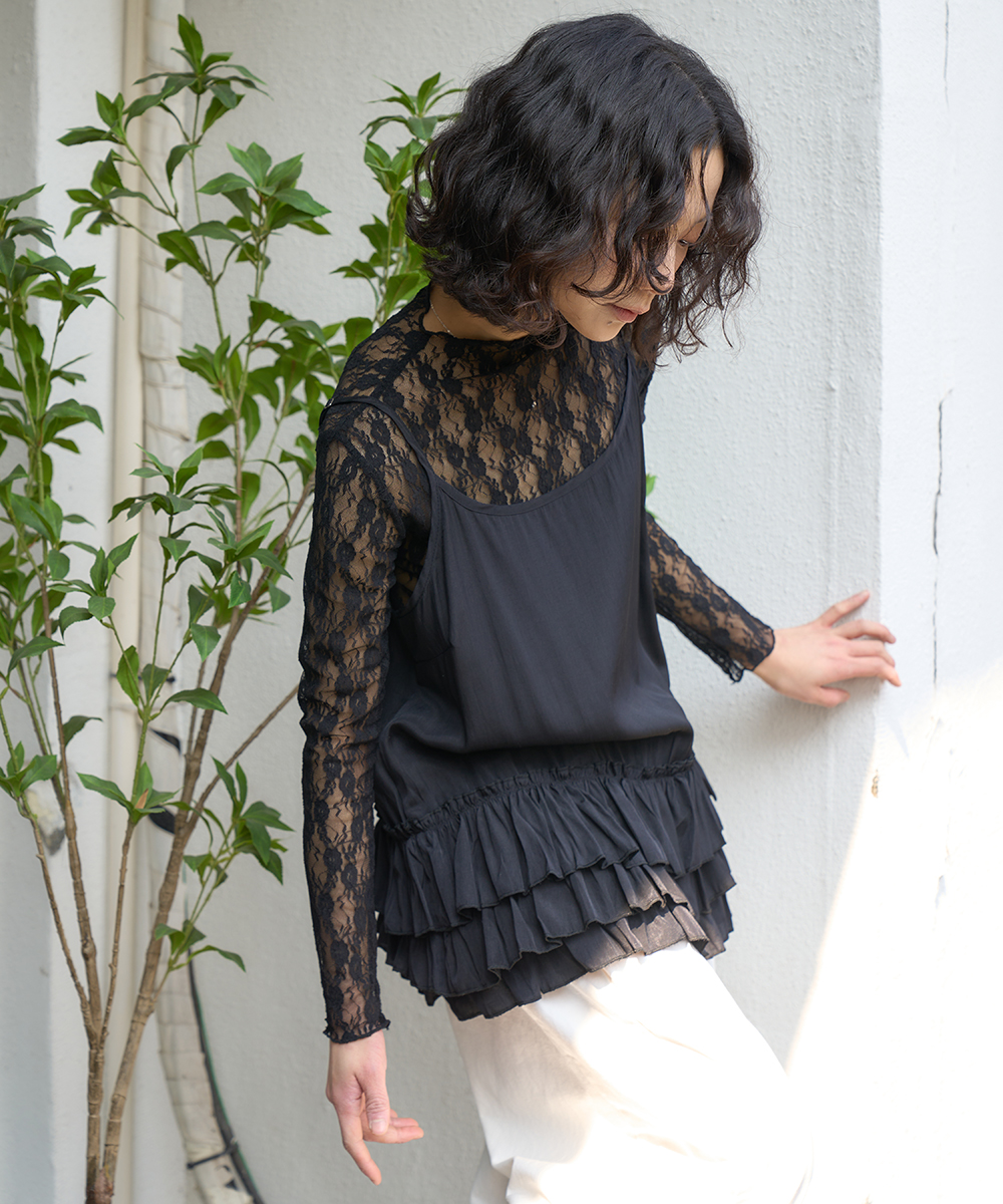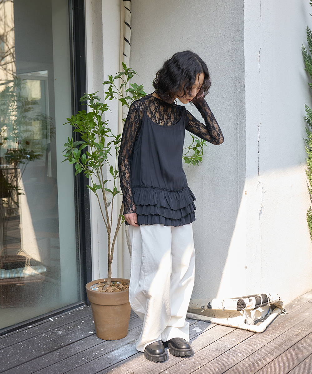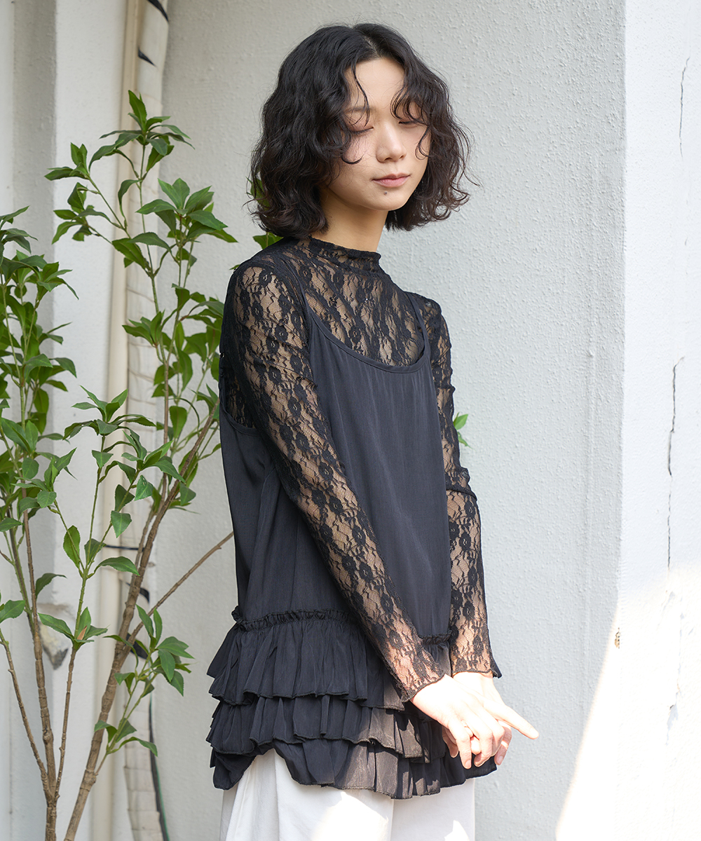 더그린랩_레이스 시스루 레이어드티 [Black]SALE