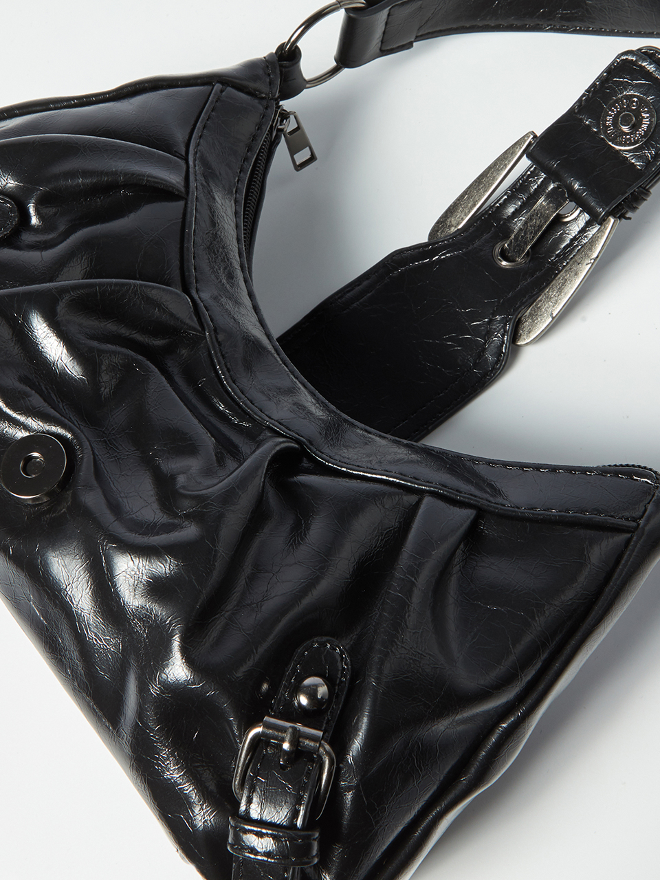 메인 지퍼에 버클 스트랩 마그넷을 더한 안정적인 듀얼 클로징