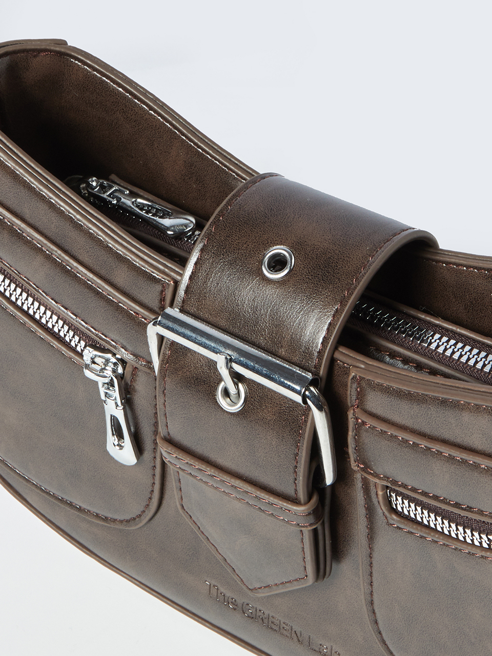 매트한 워시드 포우 레더에 볼드한 메탈 디테일을 더한 디자인