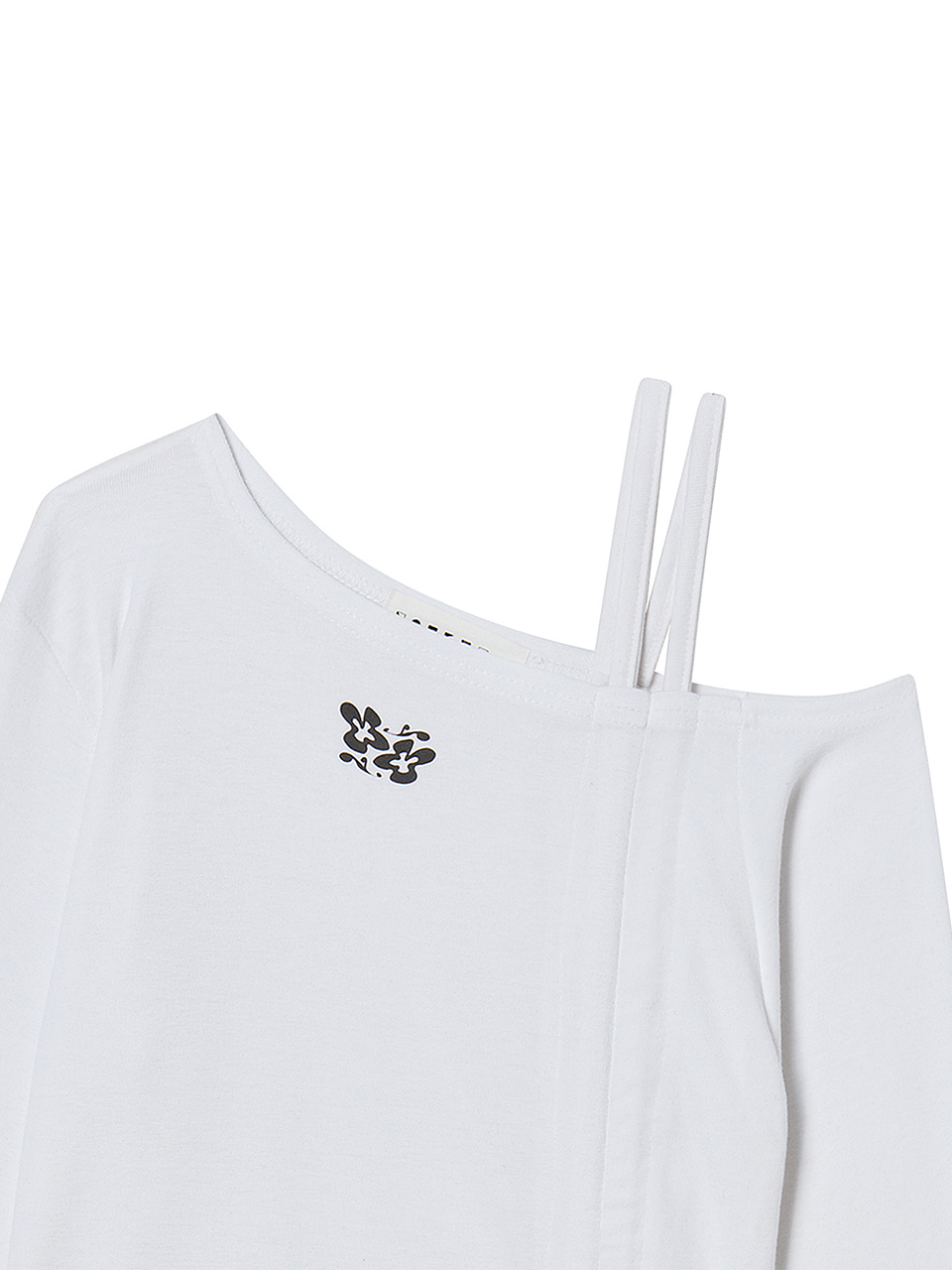 어깨 스트랩의 원숄더 디자인으로 세련된 넥라인과 무드 연출