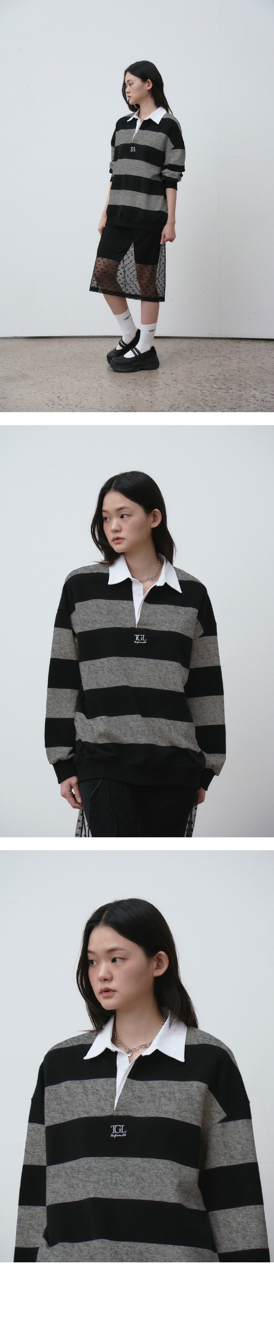 소프트한 터치감의 쭈리 스트라이프 럭비 맨투맨 티셔츠