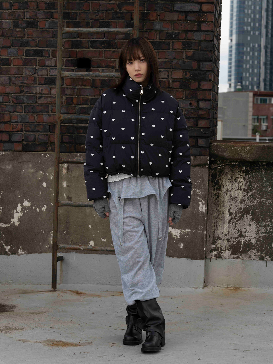 데일리 룩에 포인트를 주는 미니 하트 올오버 프린트