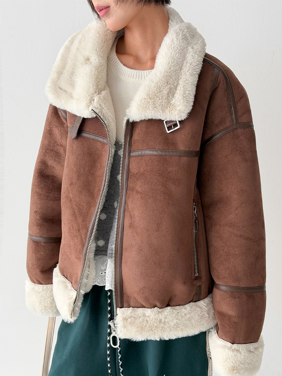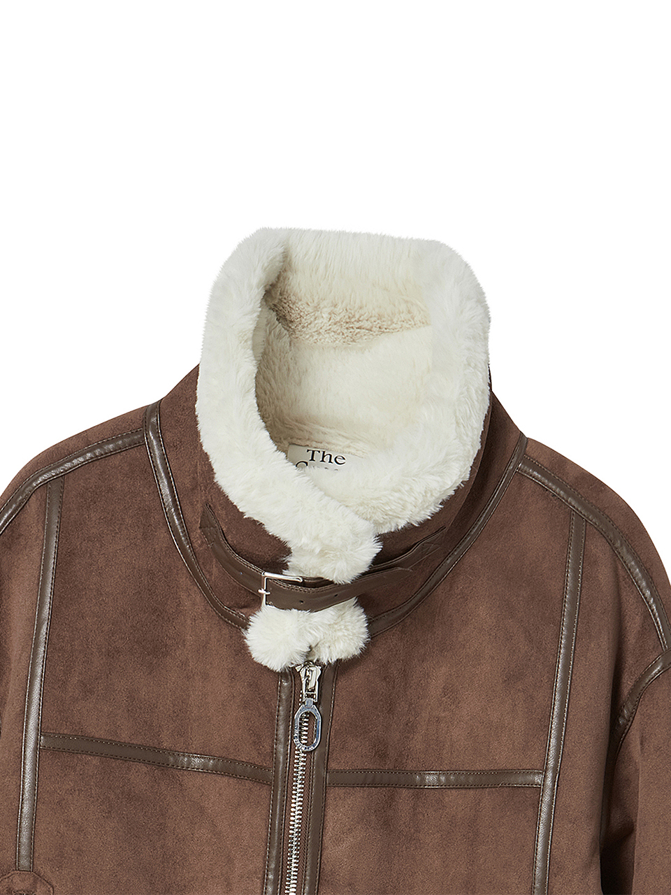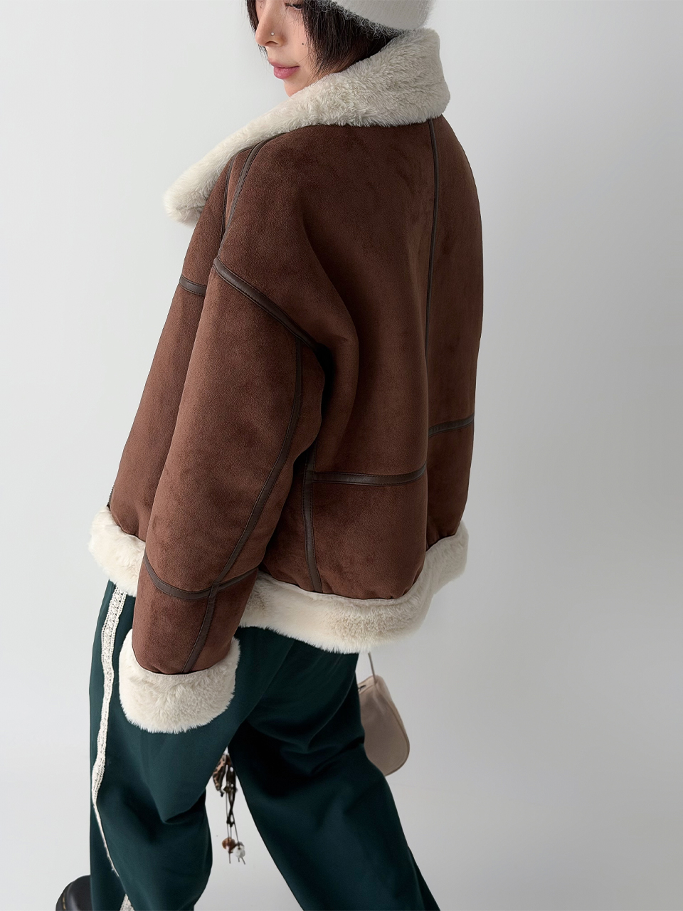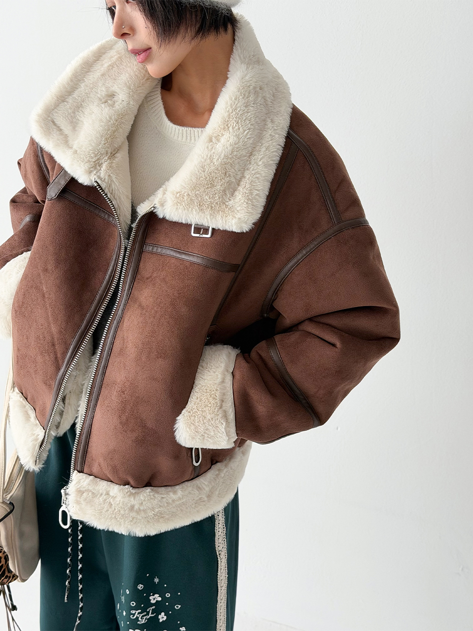 부드러운 스웨이드 겉감의 여유로운 무스탕 쟈켓