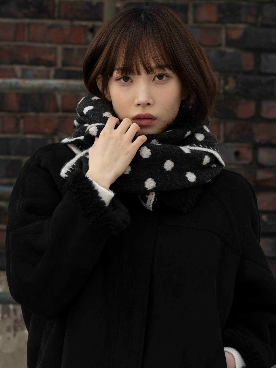 선명한 콘트라스트 도트 패턴으로 룩에 러블리한 포인트