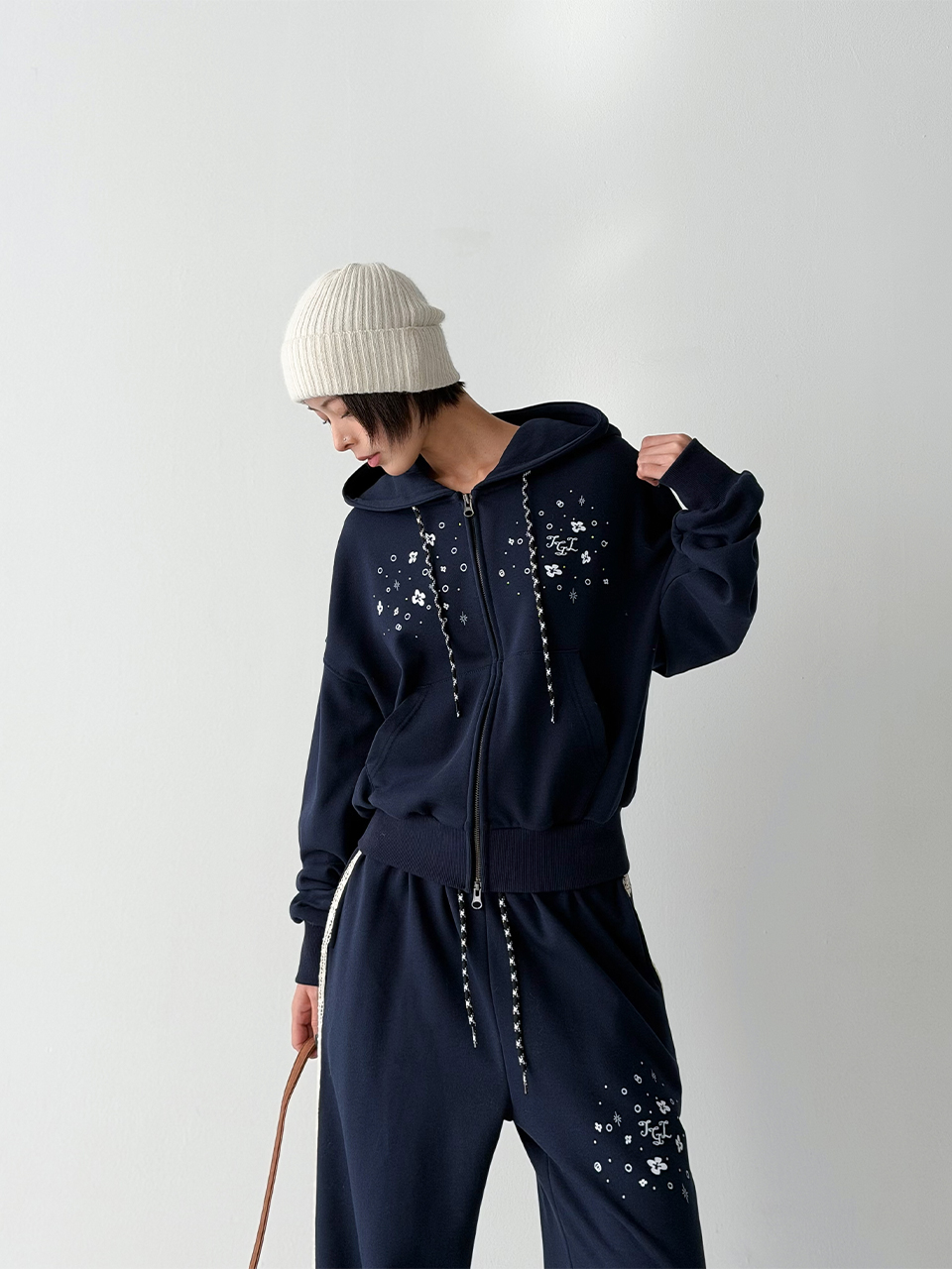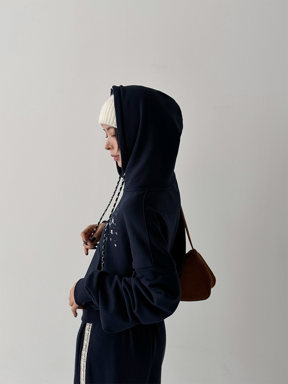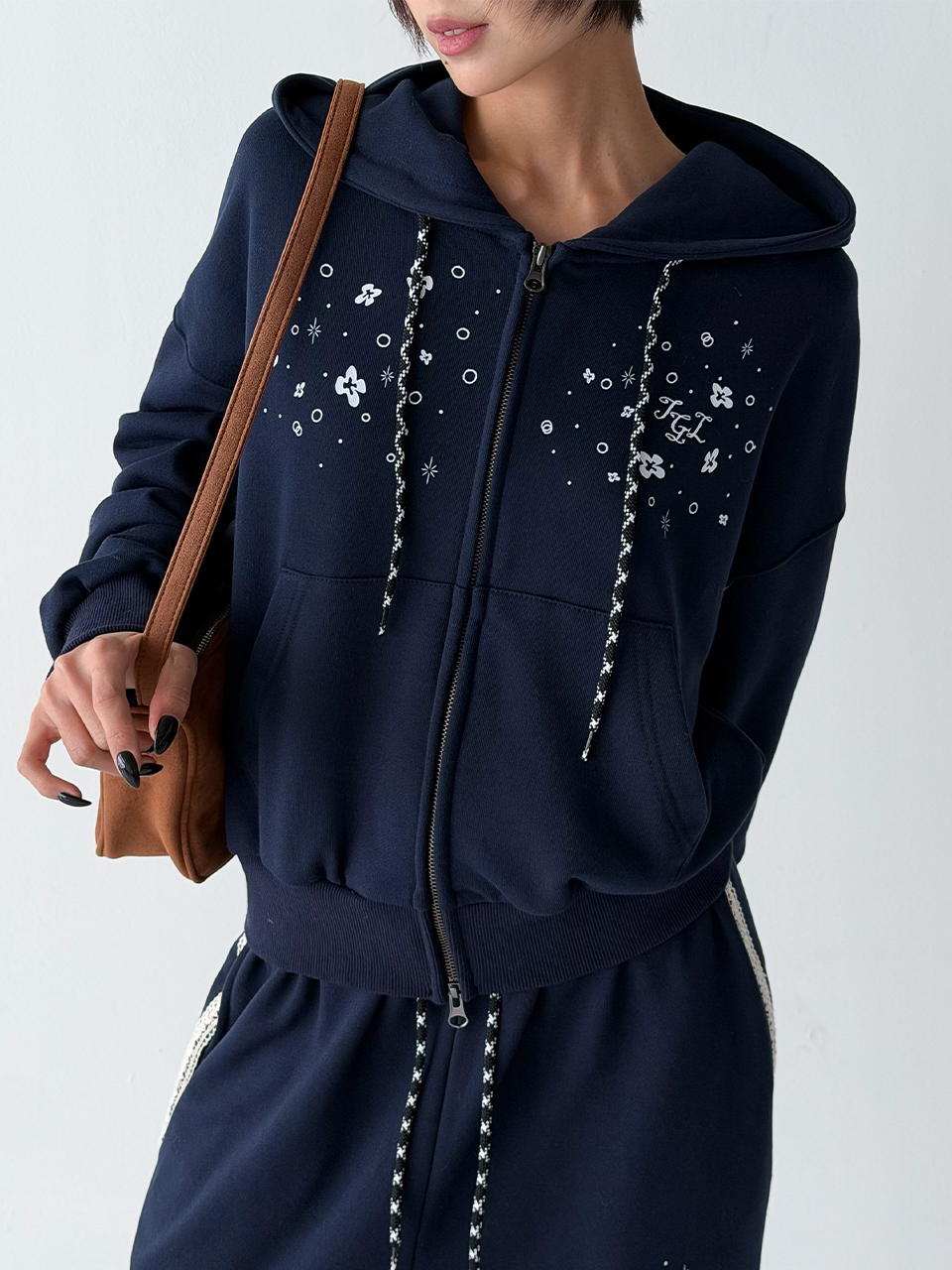 더그린랩_쭈리 크롭 후드 집업 [Navy]