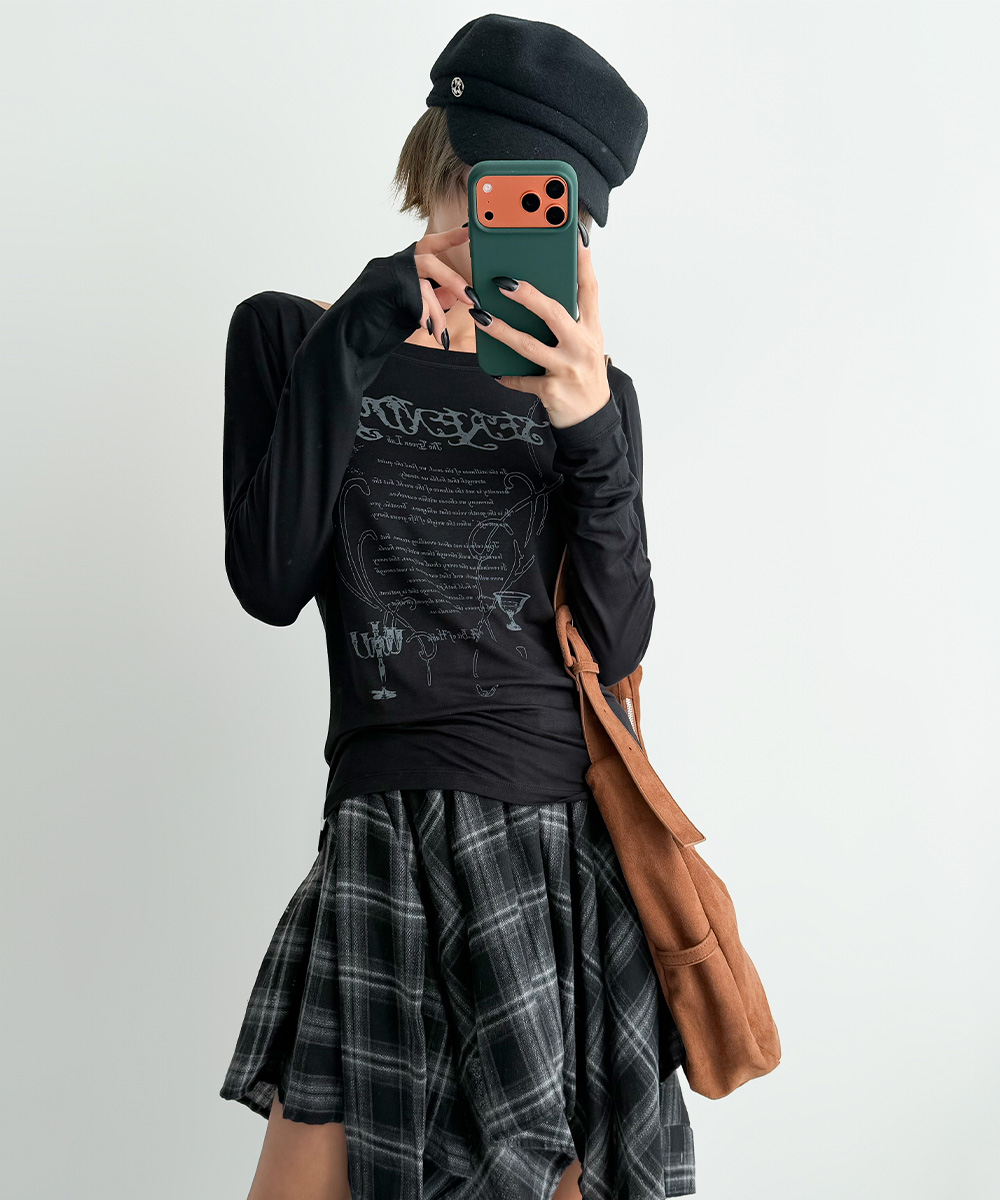 더그린랩_오프숄더 그래픽 롱슬리브 [Black]SALEMD
