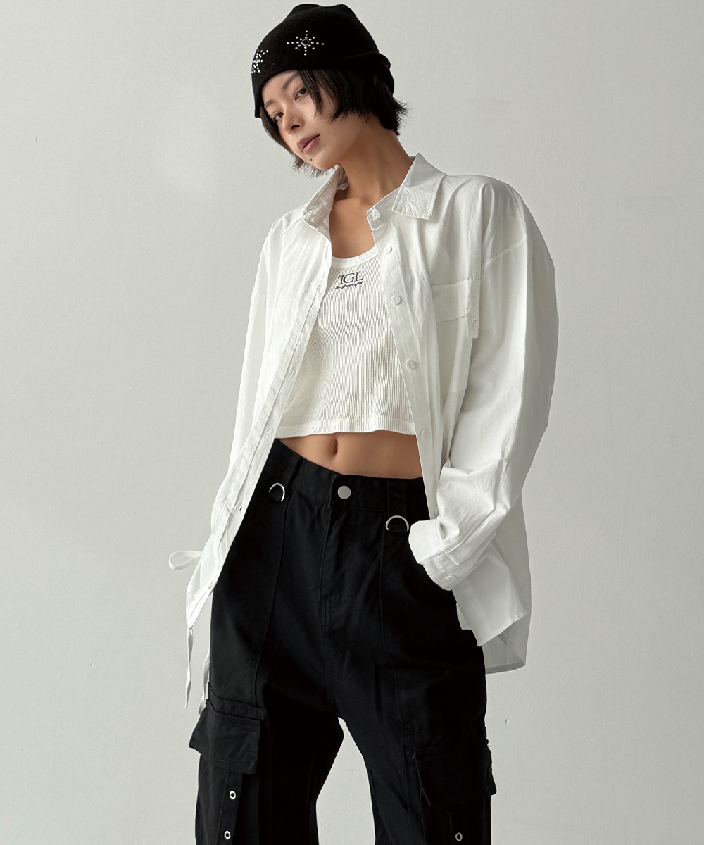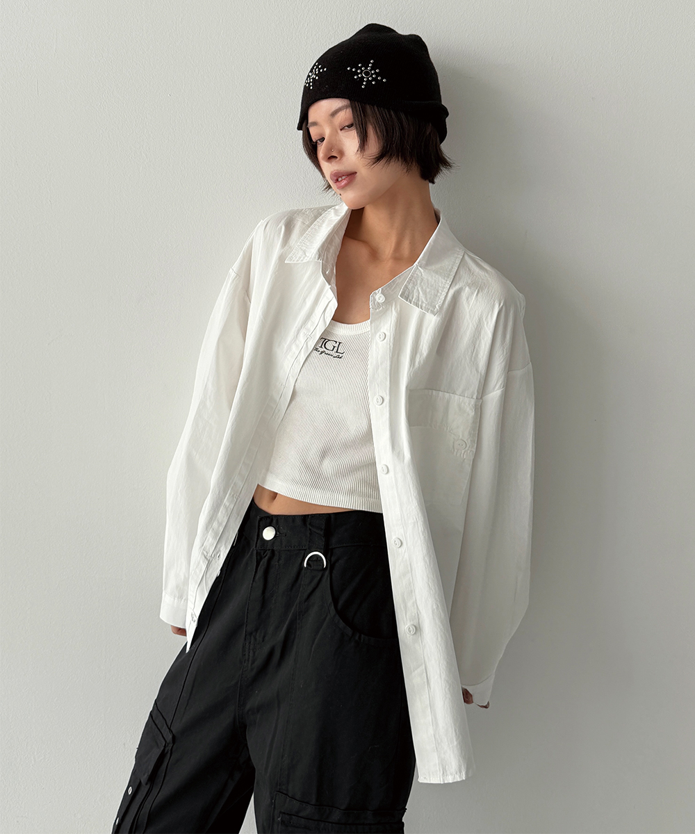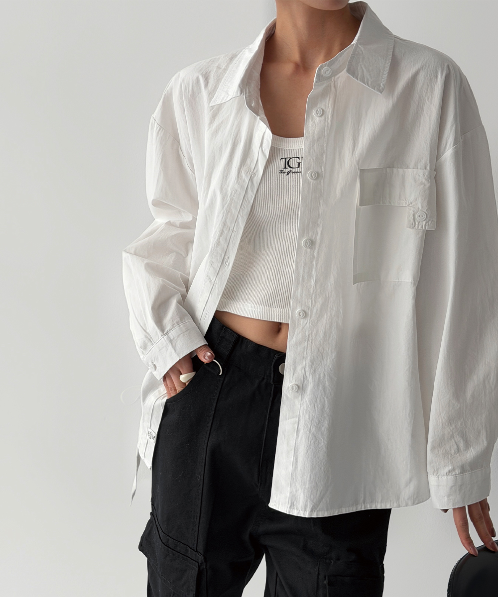 사이드 셔링 디테일이 만드는 입체적인 볼륨감이 특징인 오버사이즈 셔츠입니다.