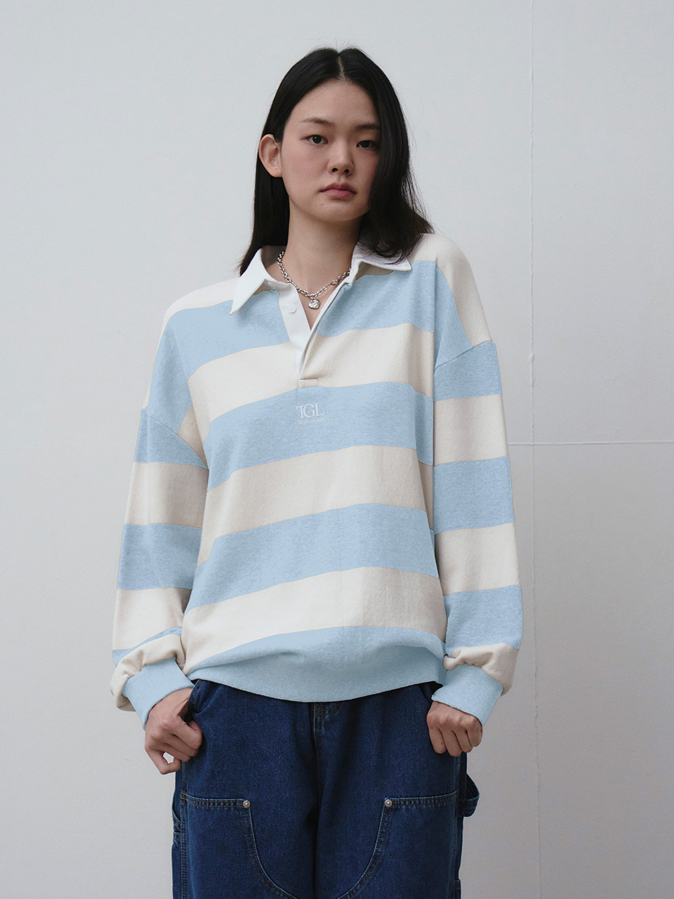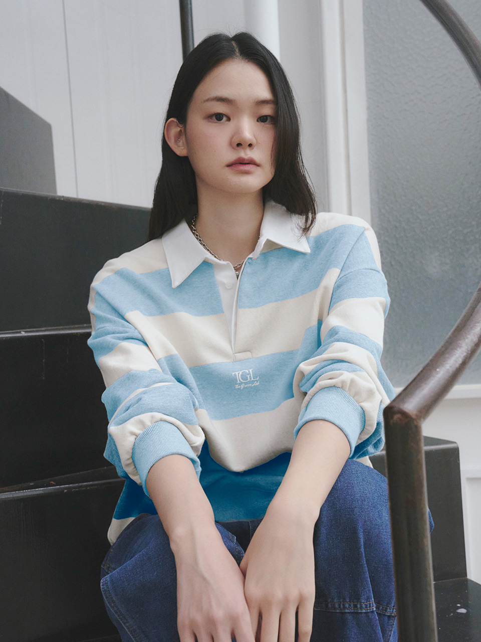 소프트한 터치감의 쭈리 스트라이프 럭비 맨투맨 티셔츠