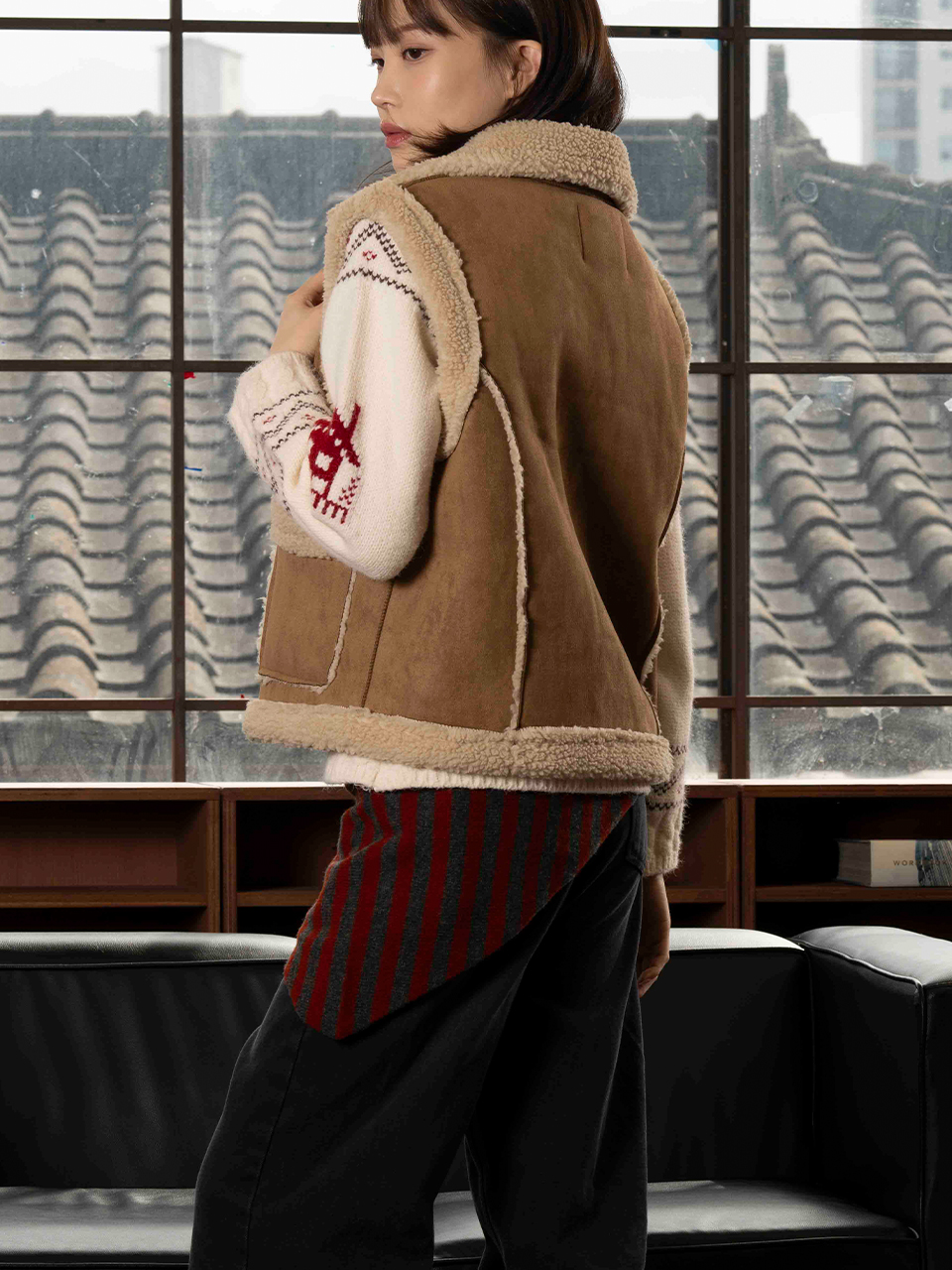 부피감 없이 목선을 정돈하는 슬림 삼각 실루엣