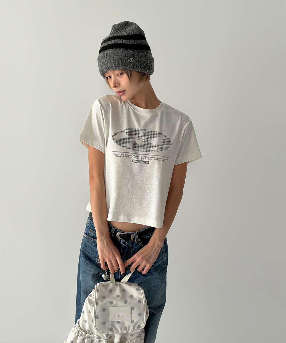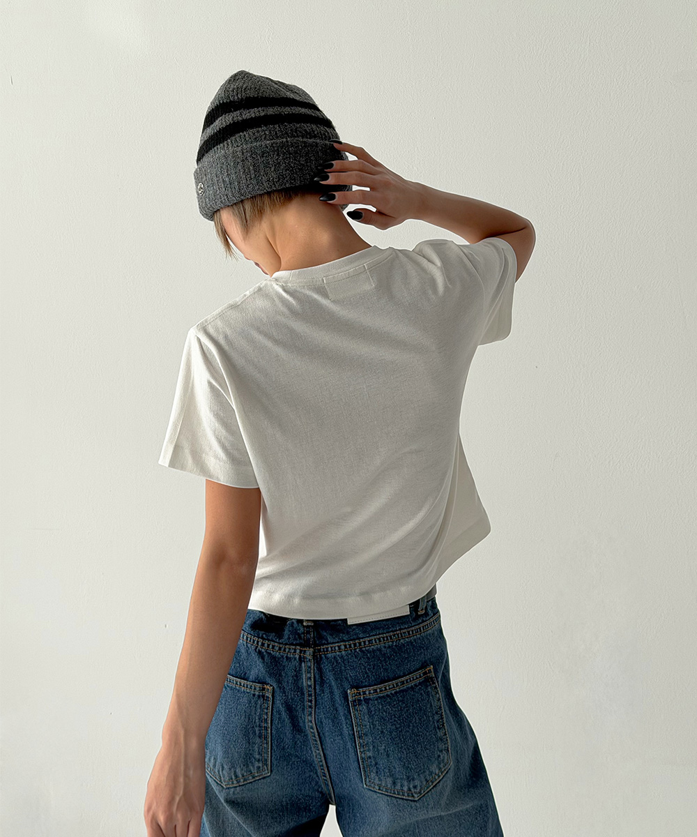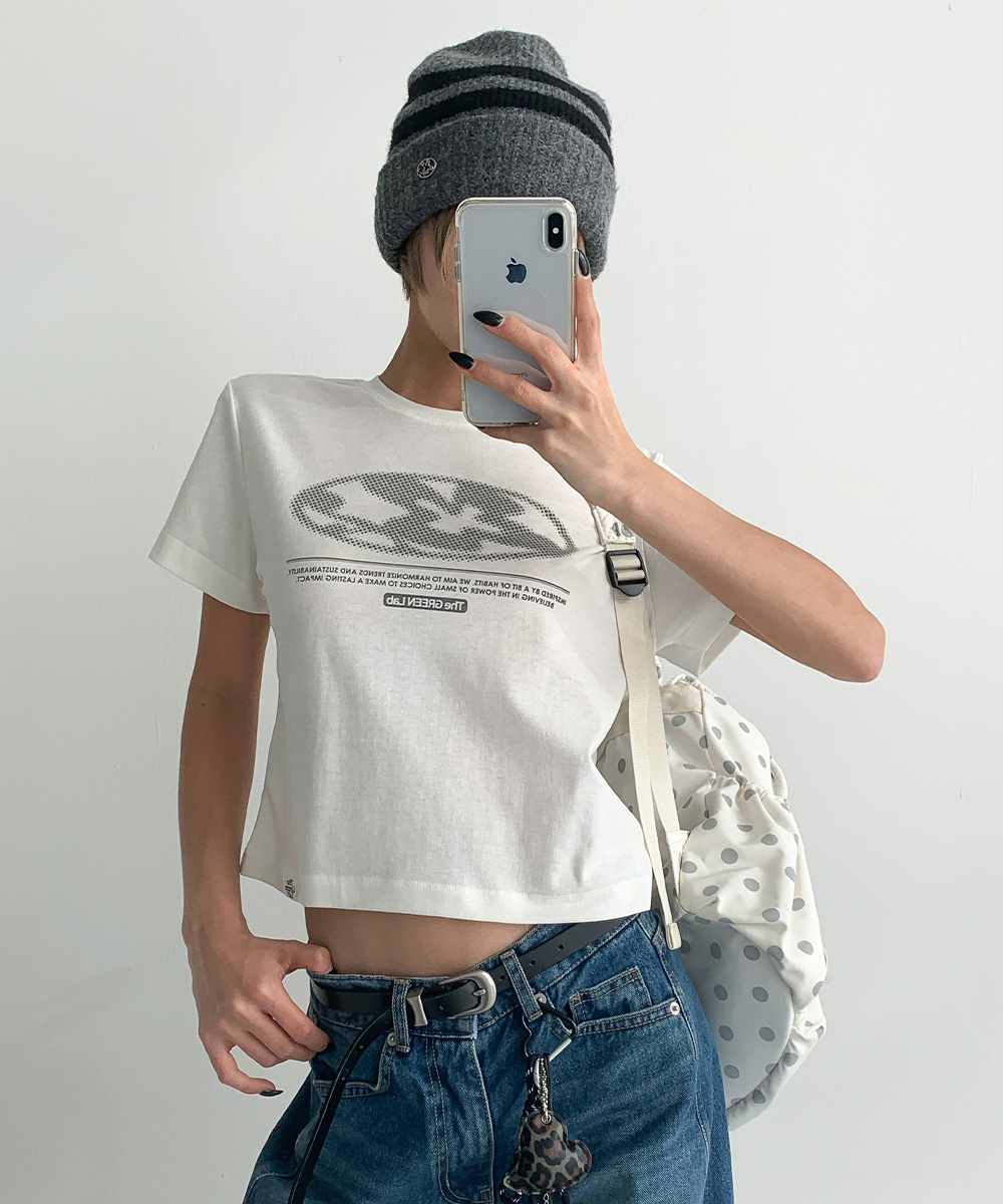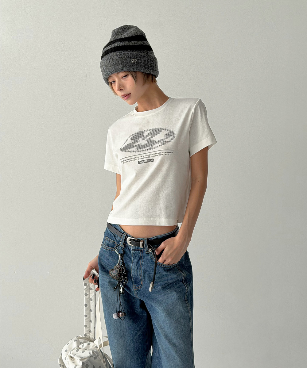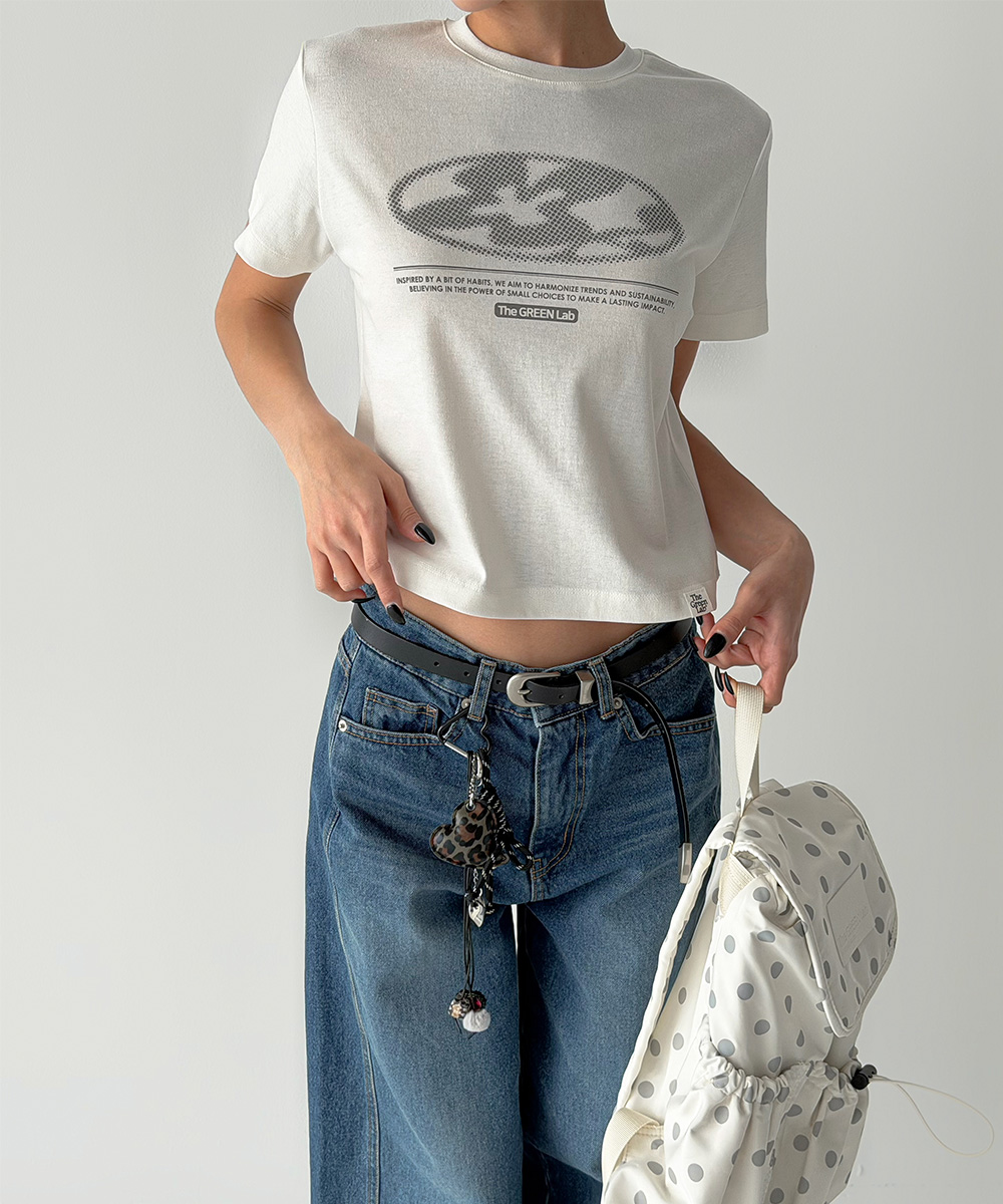 미니멀한 크롭 기장에 키치한 그래픽을 더해 단독으로도 완성도 높은 스타일을 연출합니다.