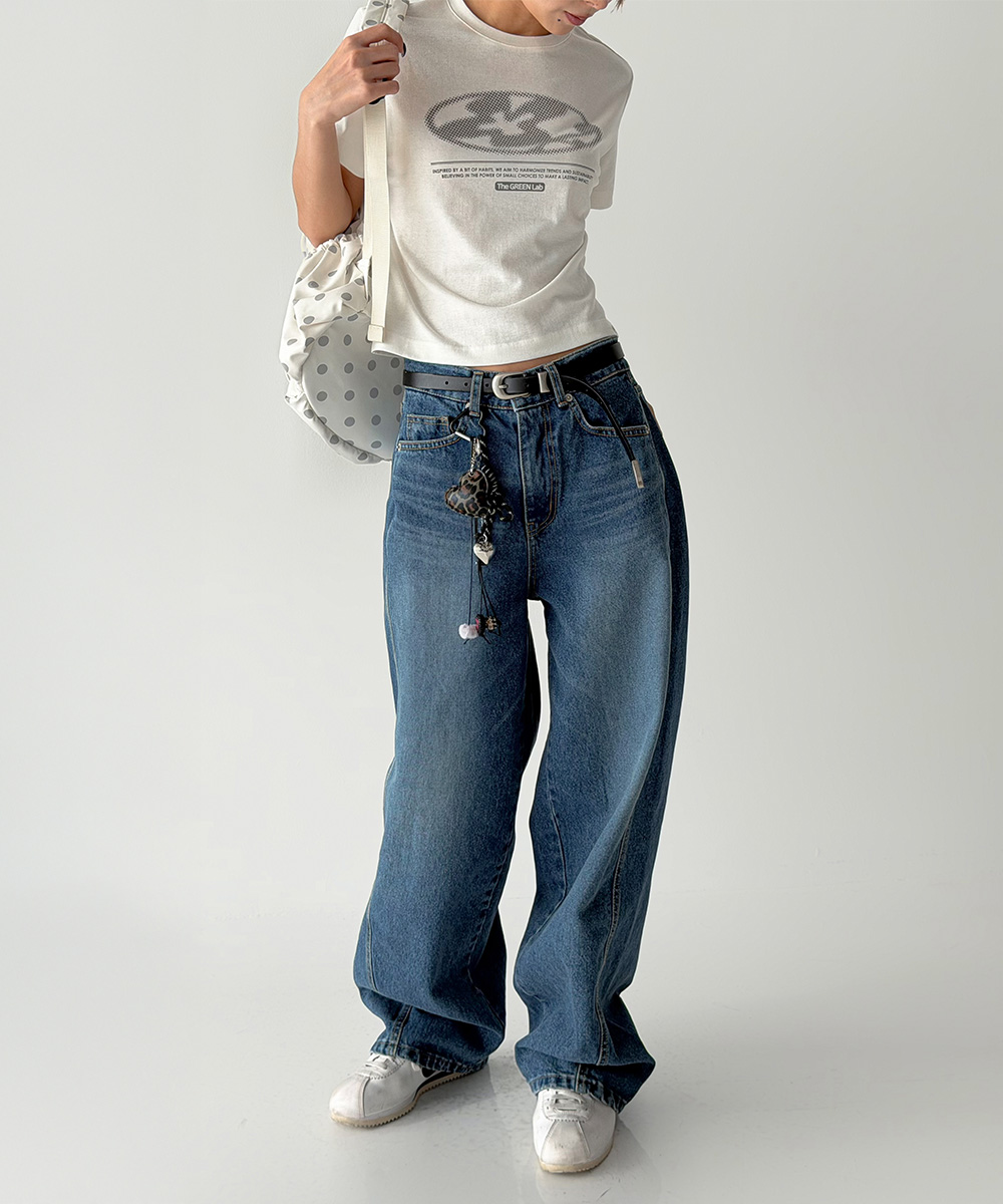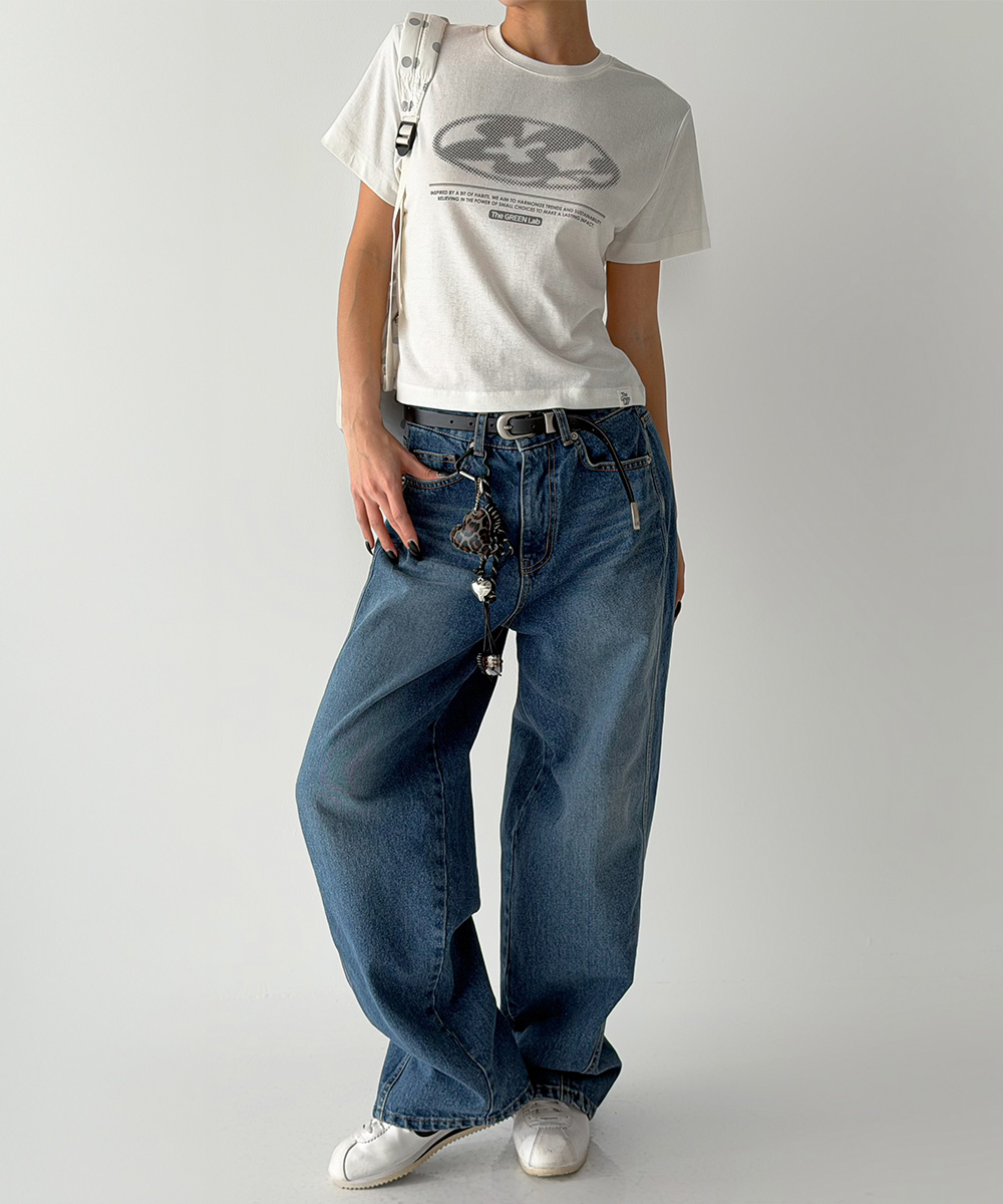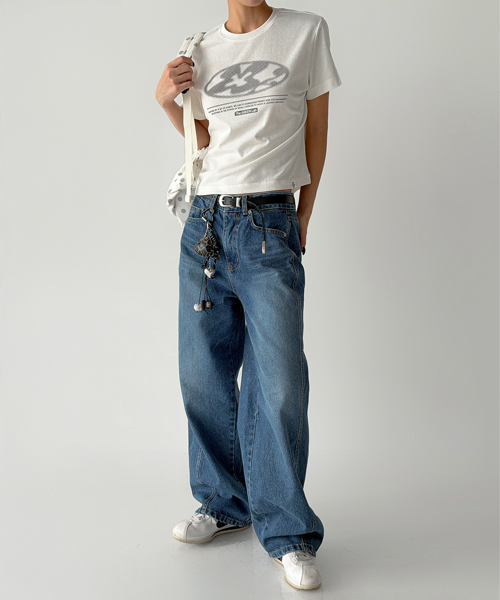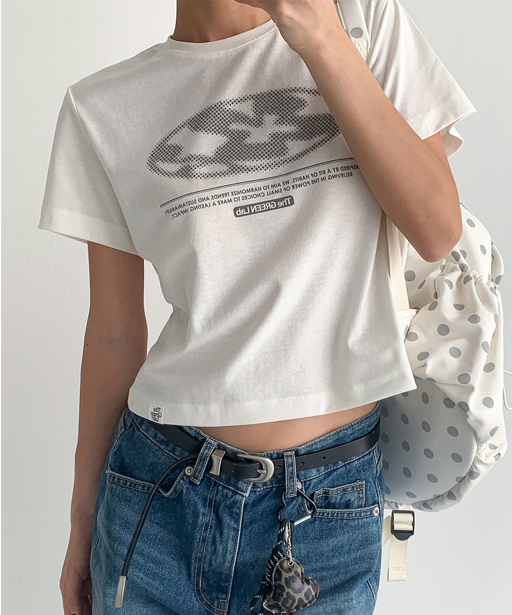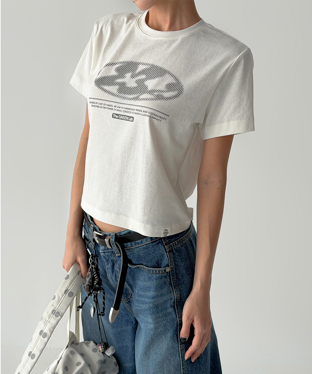 미니멀한 크롭 기장에 키치한 그래픽을 더해 단독으로도 완성도 높은 스타일을 연출합니다.
