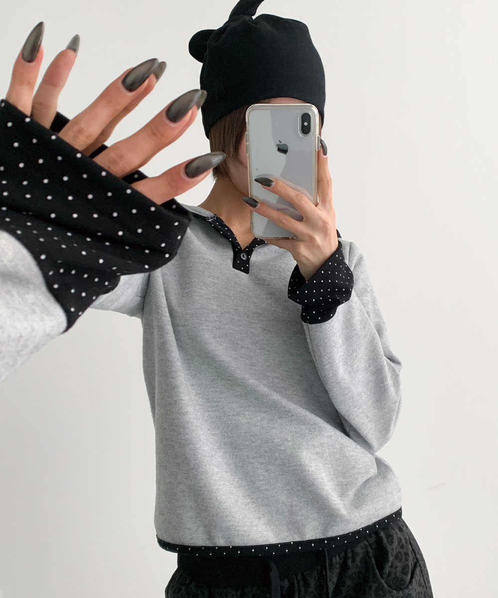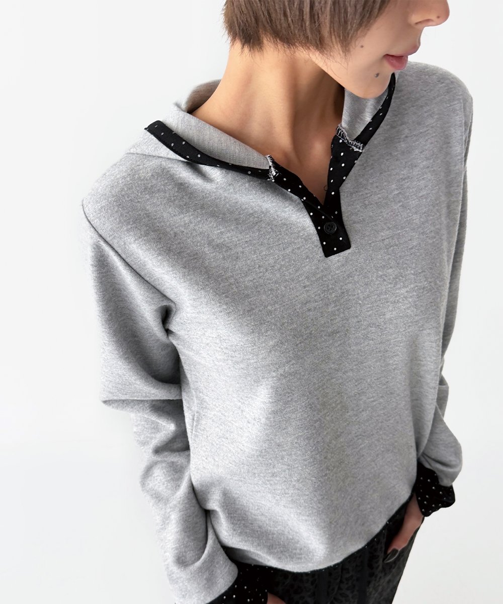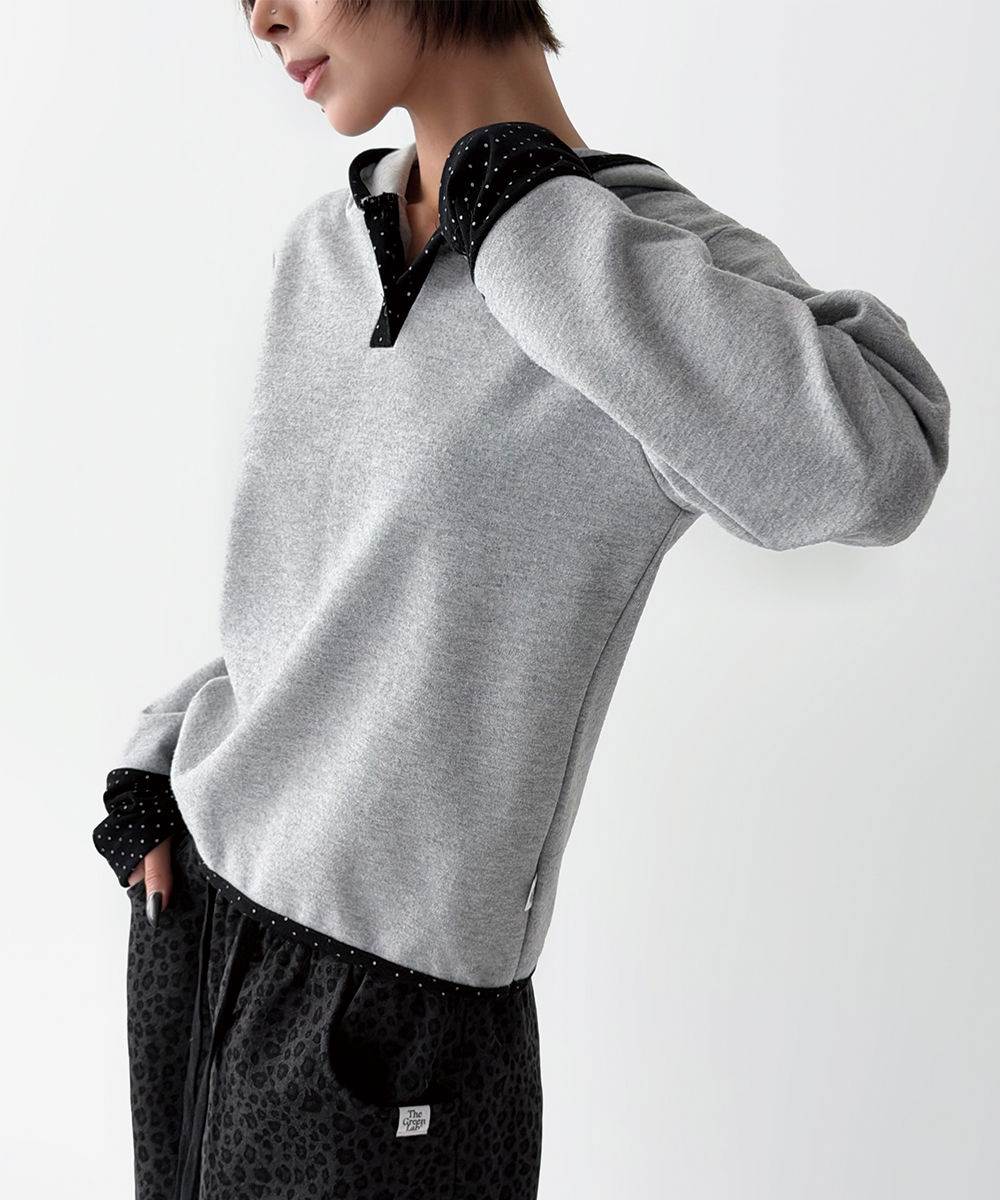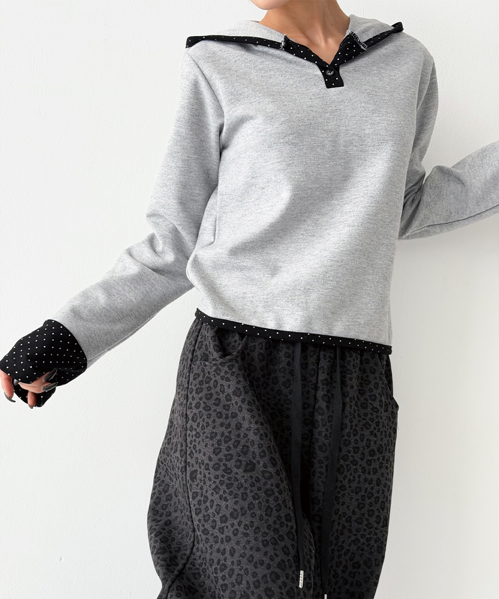 헨리넥 라인을 따라 섬세하게 흐르는 도트 파이핑이 단조로운 일상에 로맨틱한 리듬감을 더해주는 후드티입니다.