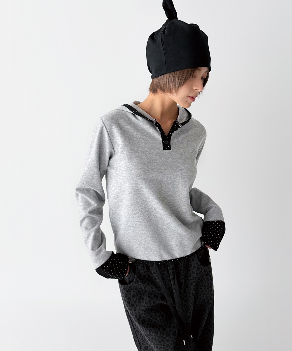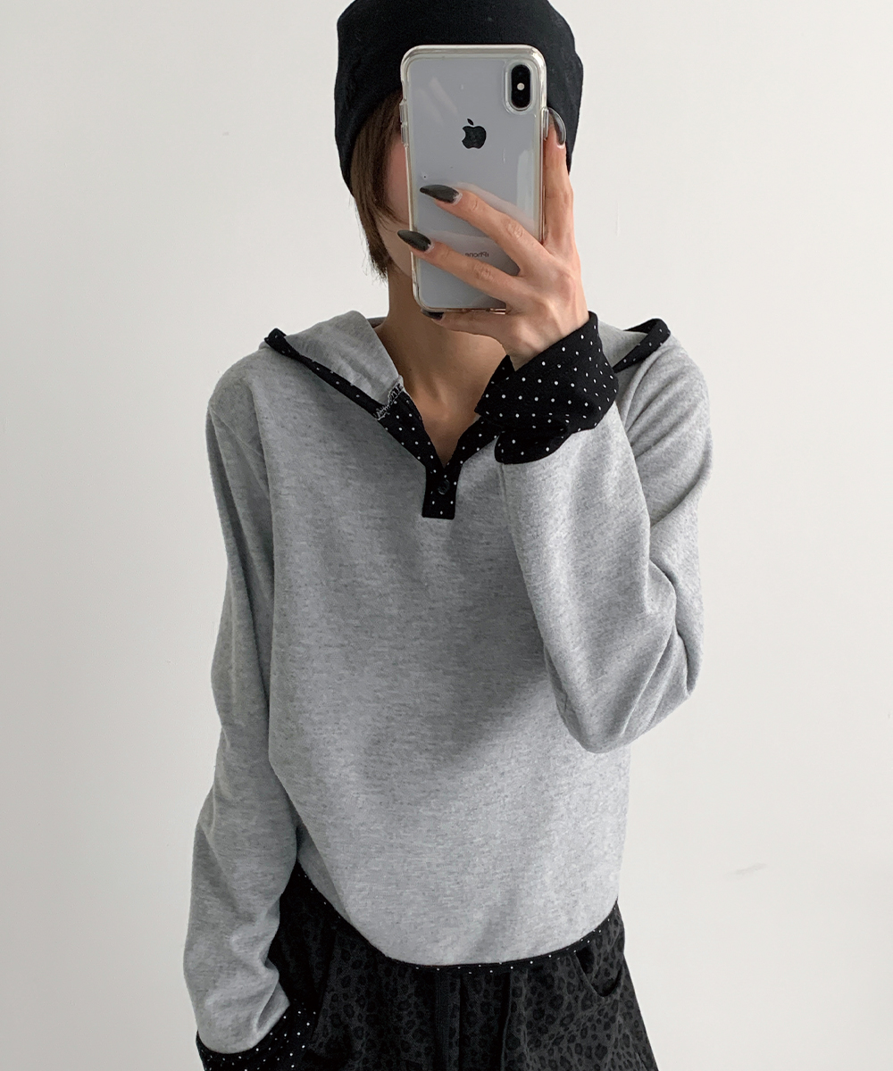 더그린랩_도트 헨리넥 후드티 [Melange Gray]SALEMDSOLDOUT