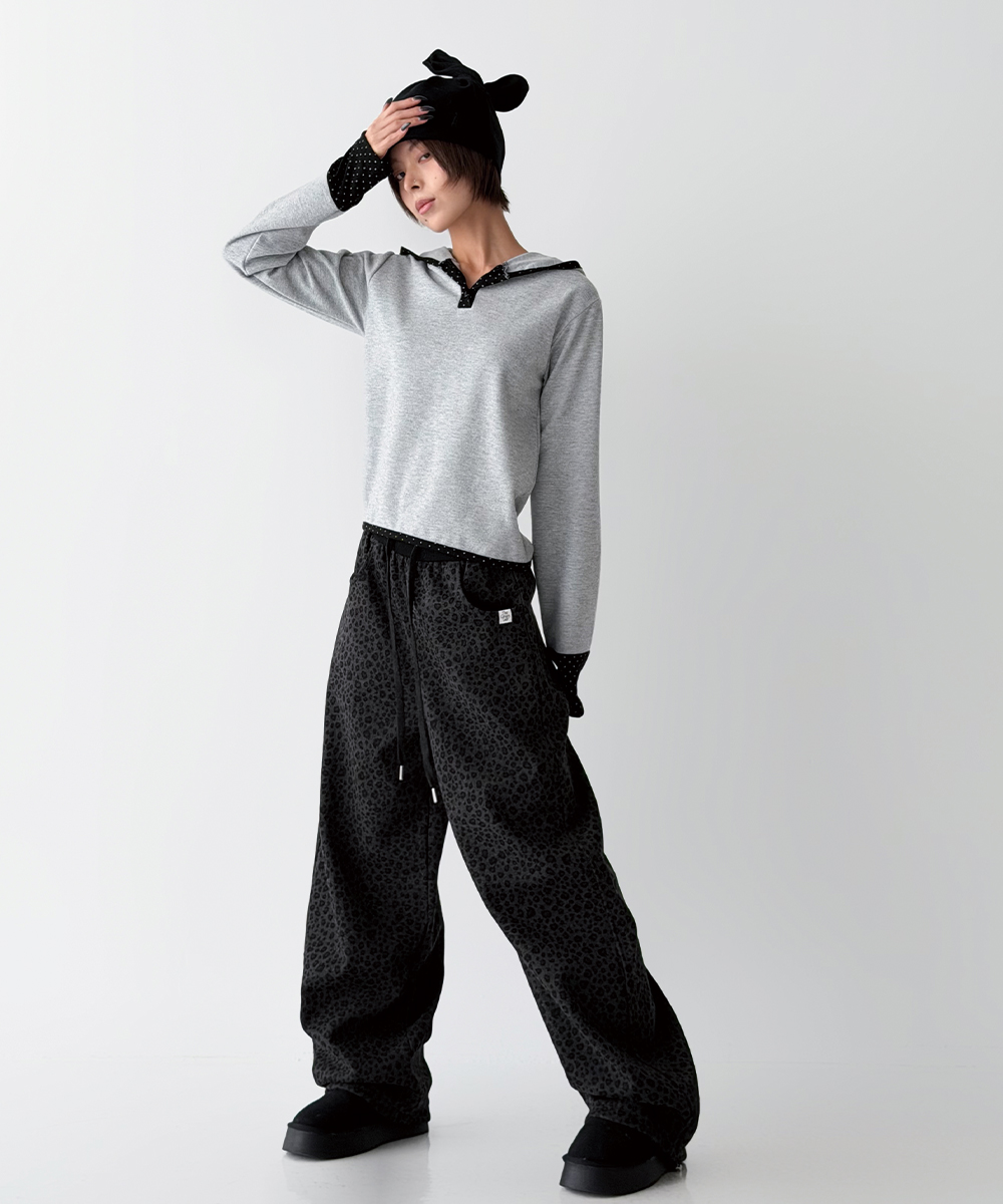 조거 팬츠나 스커트, 데님과의 키치한 스타일링을 제안합니다.