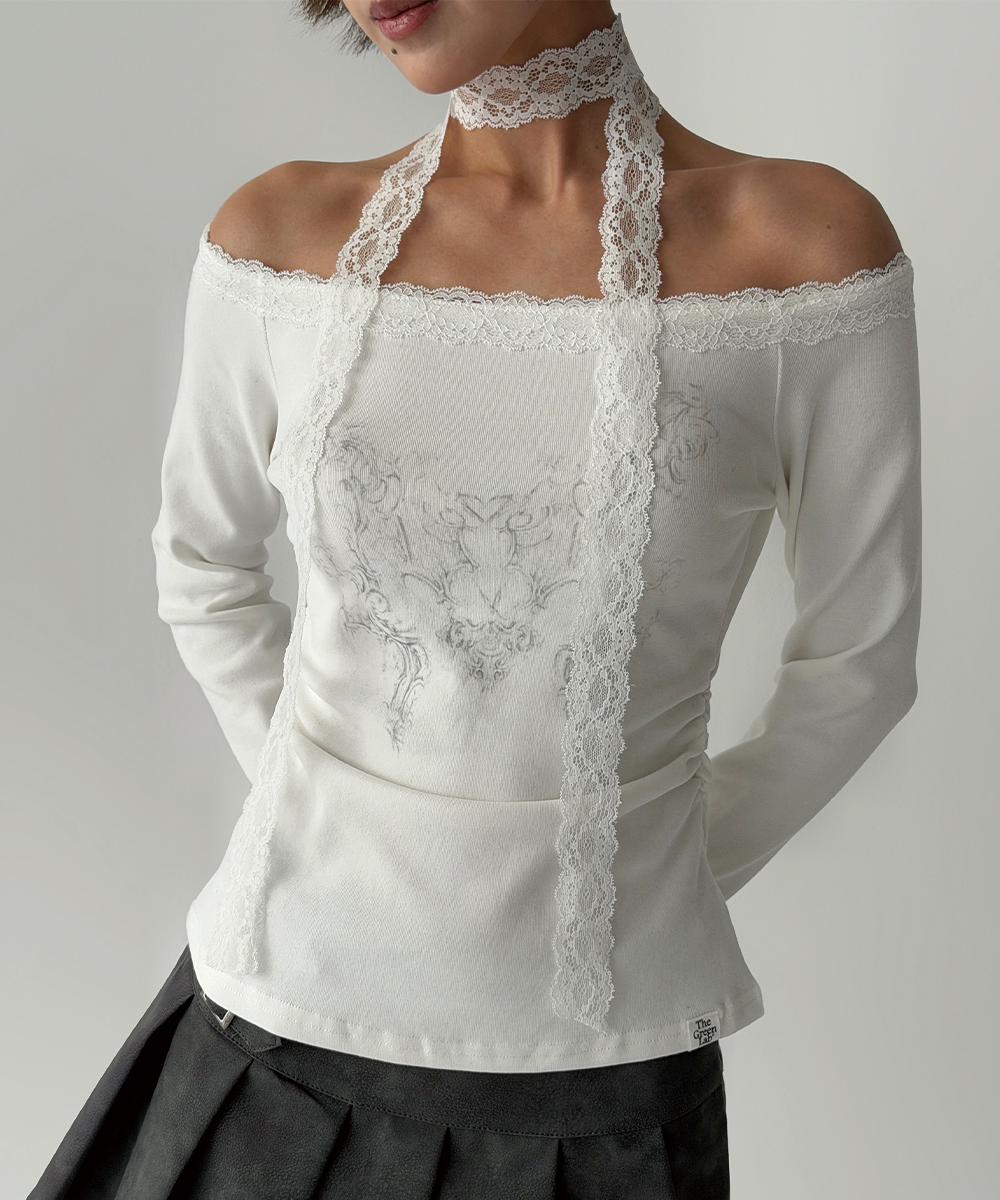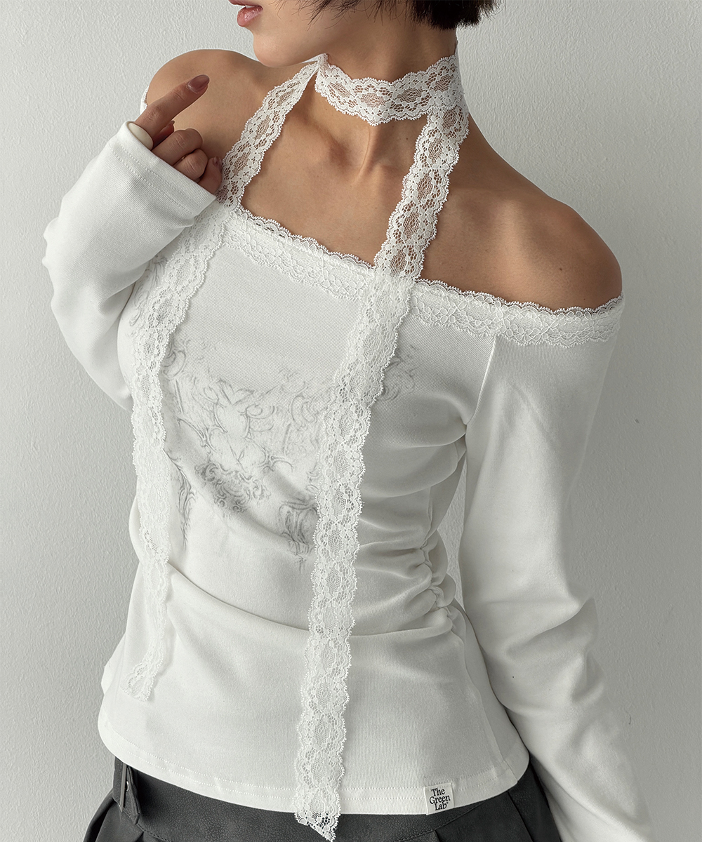 더그린랩_레이스 타이 셔링 티셔츠 [White]SALEMD