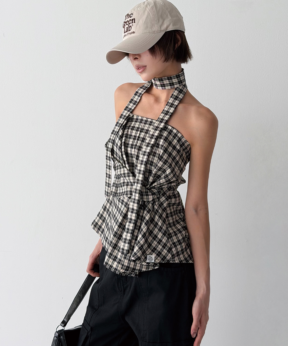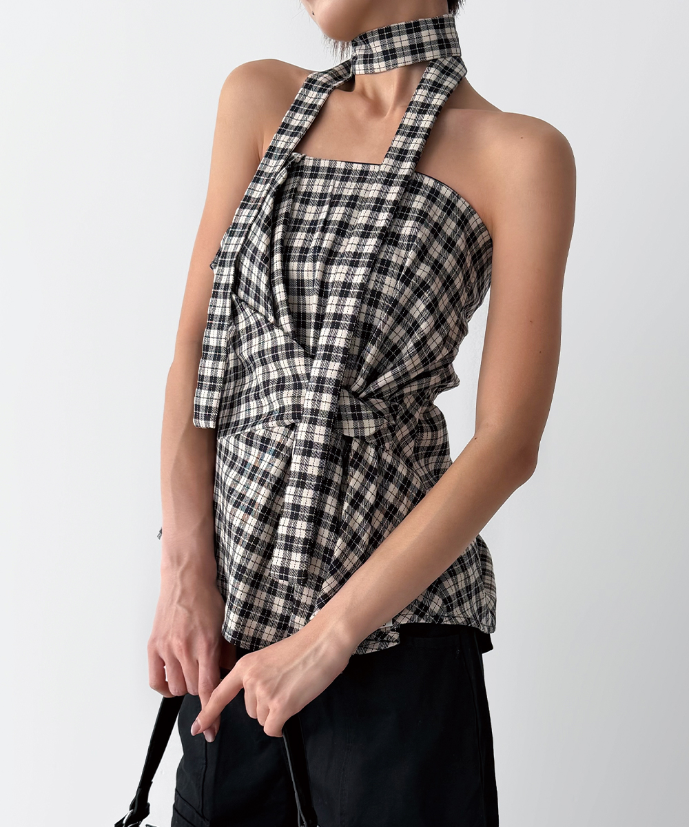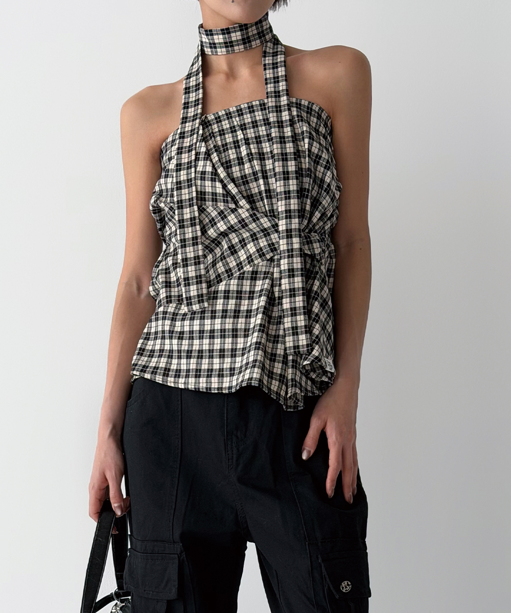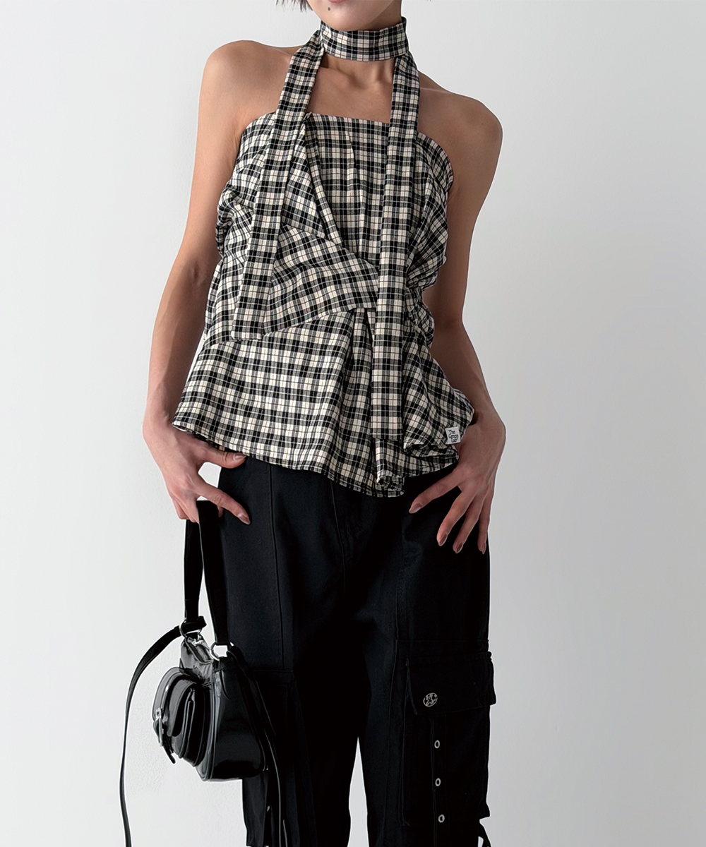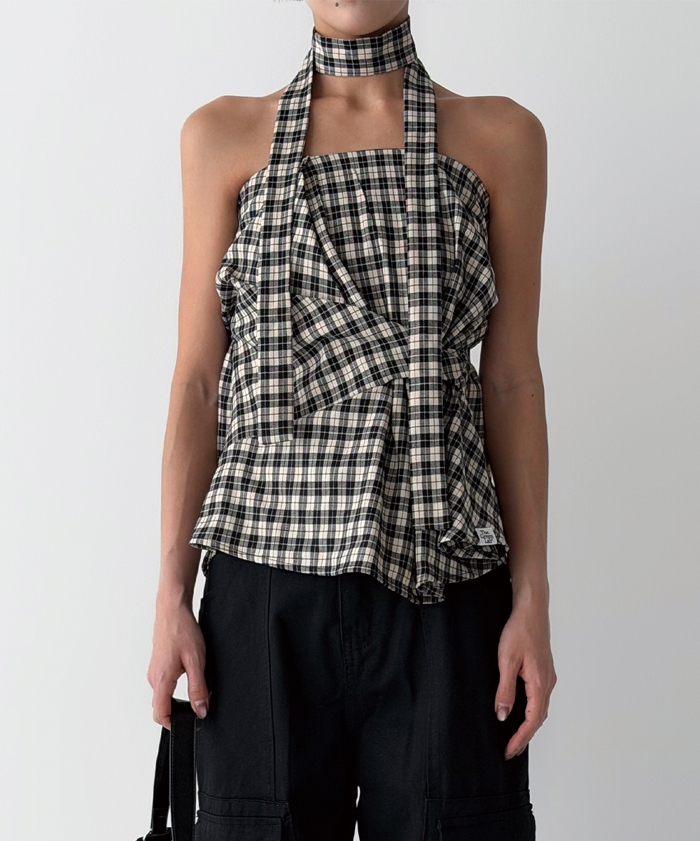 타이를 목에 둘러 초커로 연출하거나 홀터넥으로 묶는 등 연출 방식에 따라 다양한 분위기를 자아낼 수 있는 멀티웨이 뷔스티에입니다.