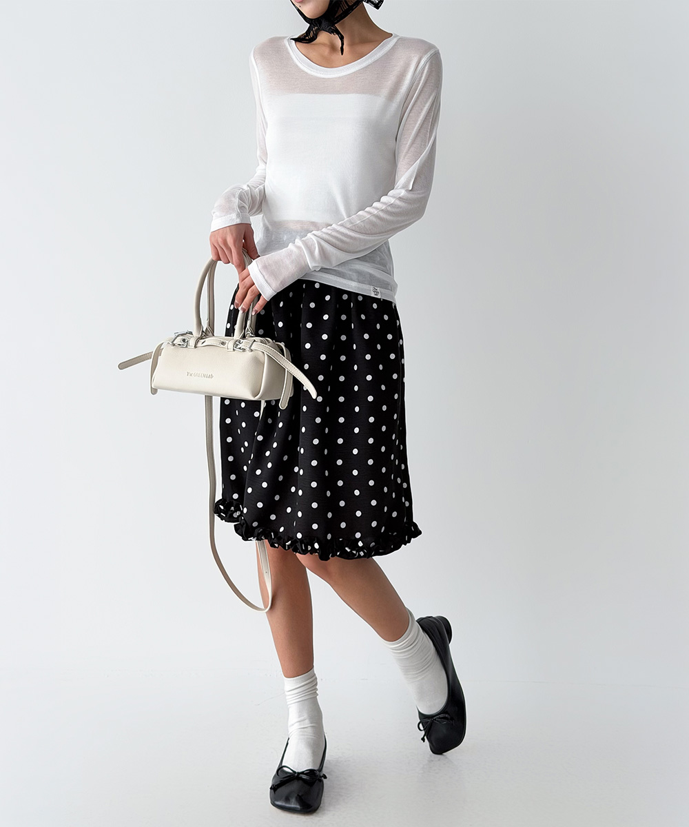 바디 라인을 따라 자연스럽게 밀착되는 슬림 핏과 손등을 여유 있게 덮는 롱 슬리브 설계로, 전체적인 실루엣을 더욱 균형감 있게 연출해 줍니다.
